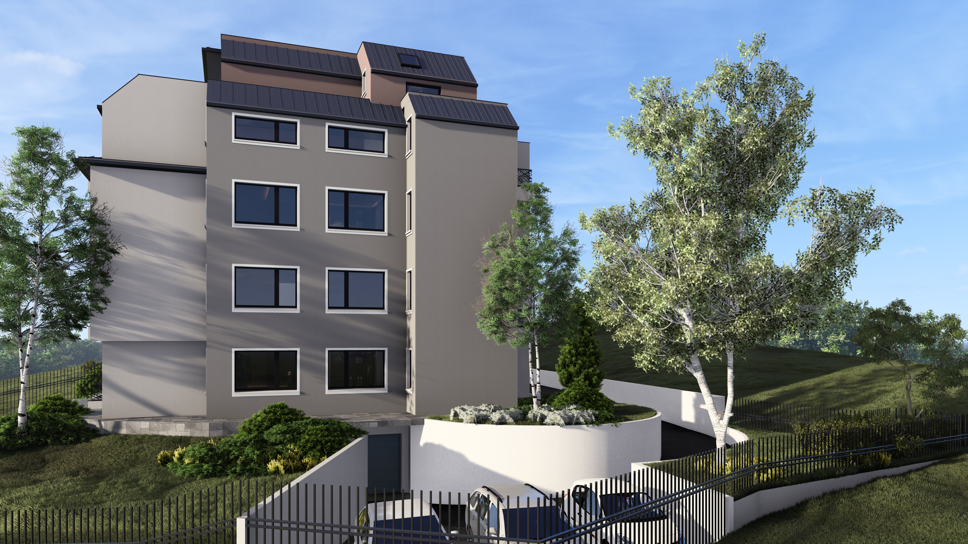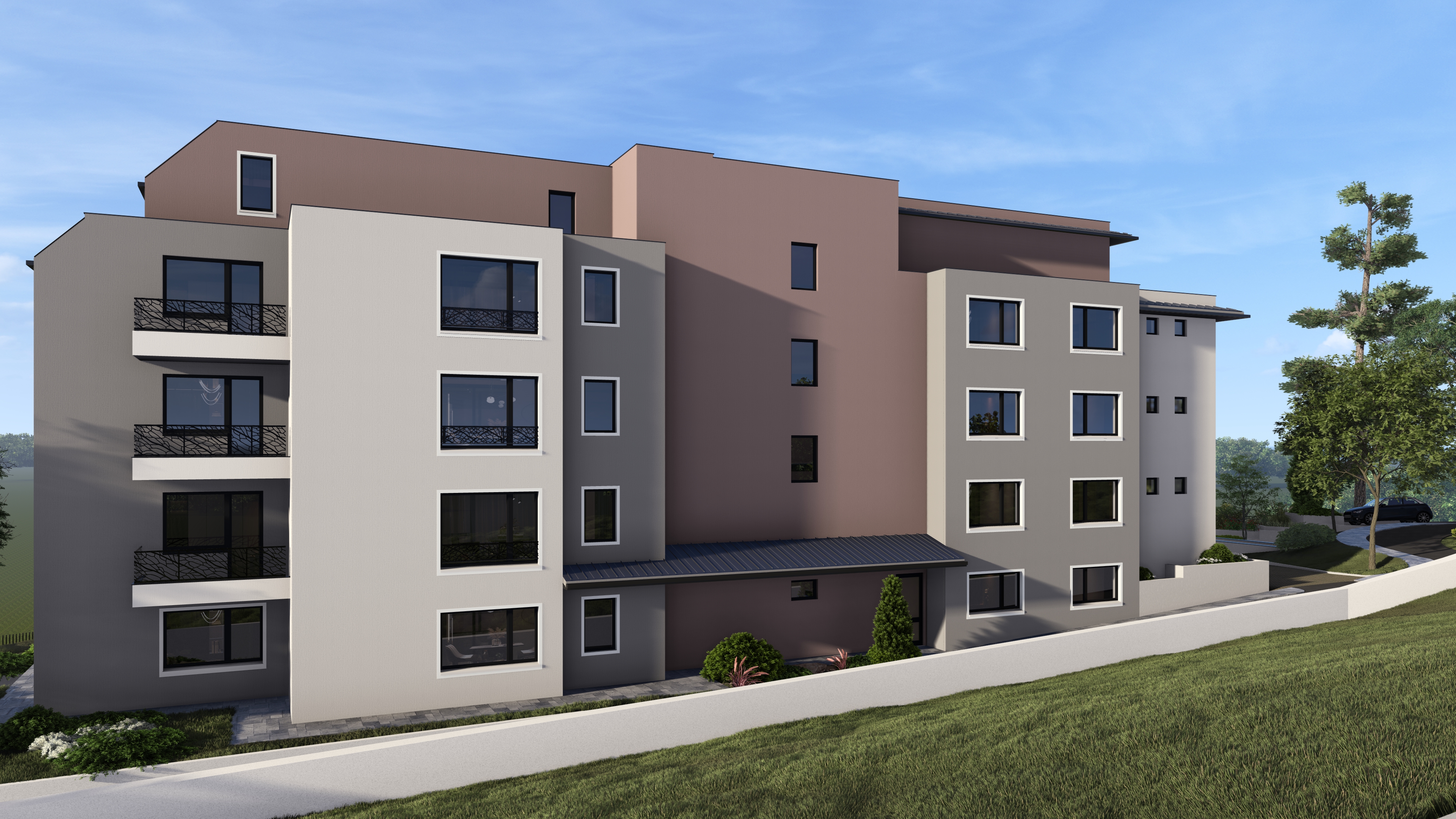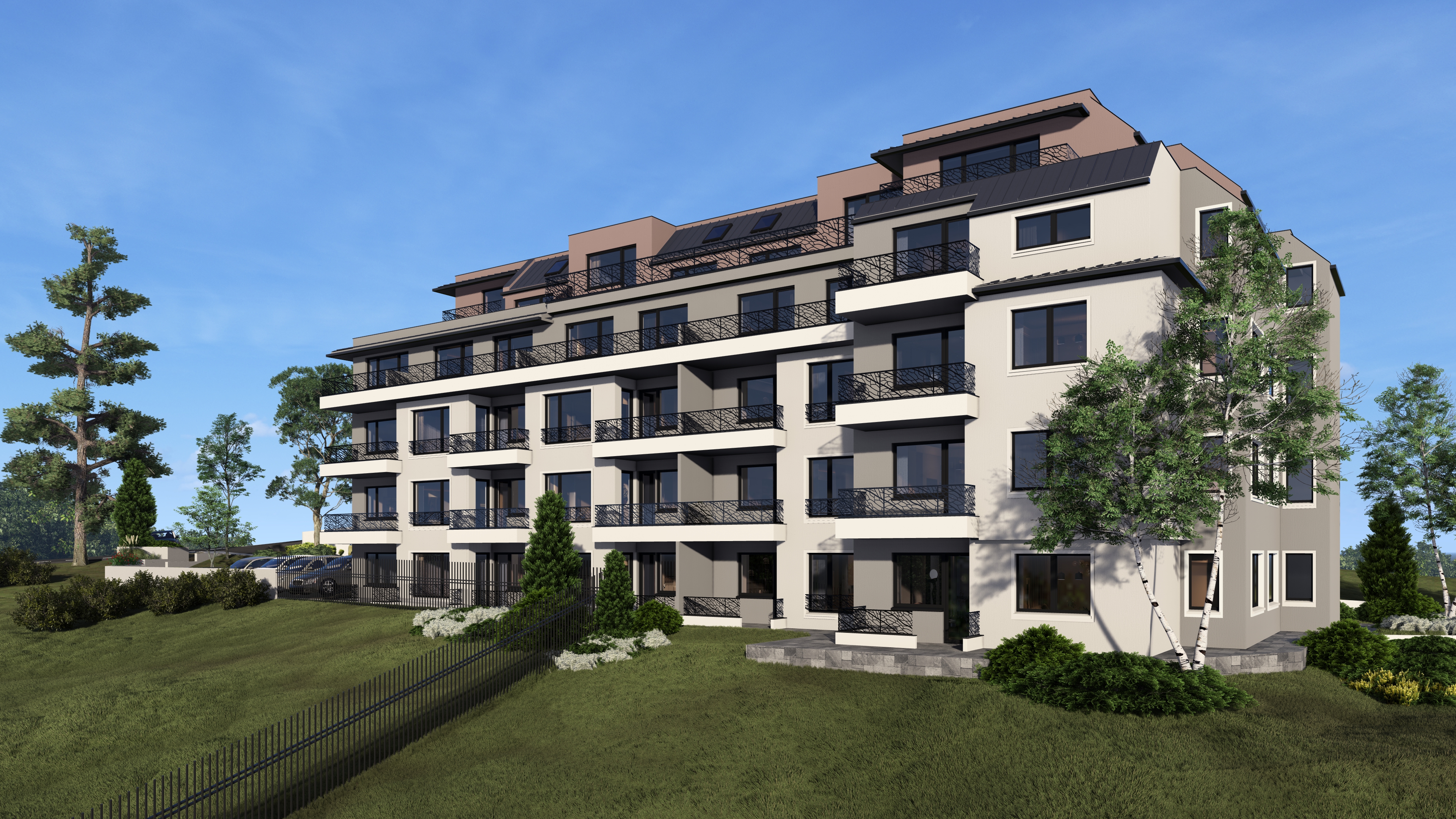 Сградата предлага съчетание между съвременна архитектура, функционалност и комфорт, създадени с внимание към детайла и усещане за уют.
