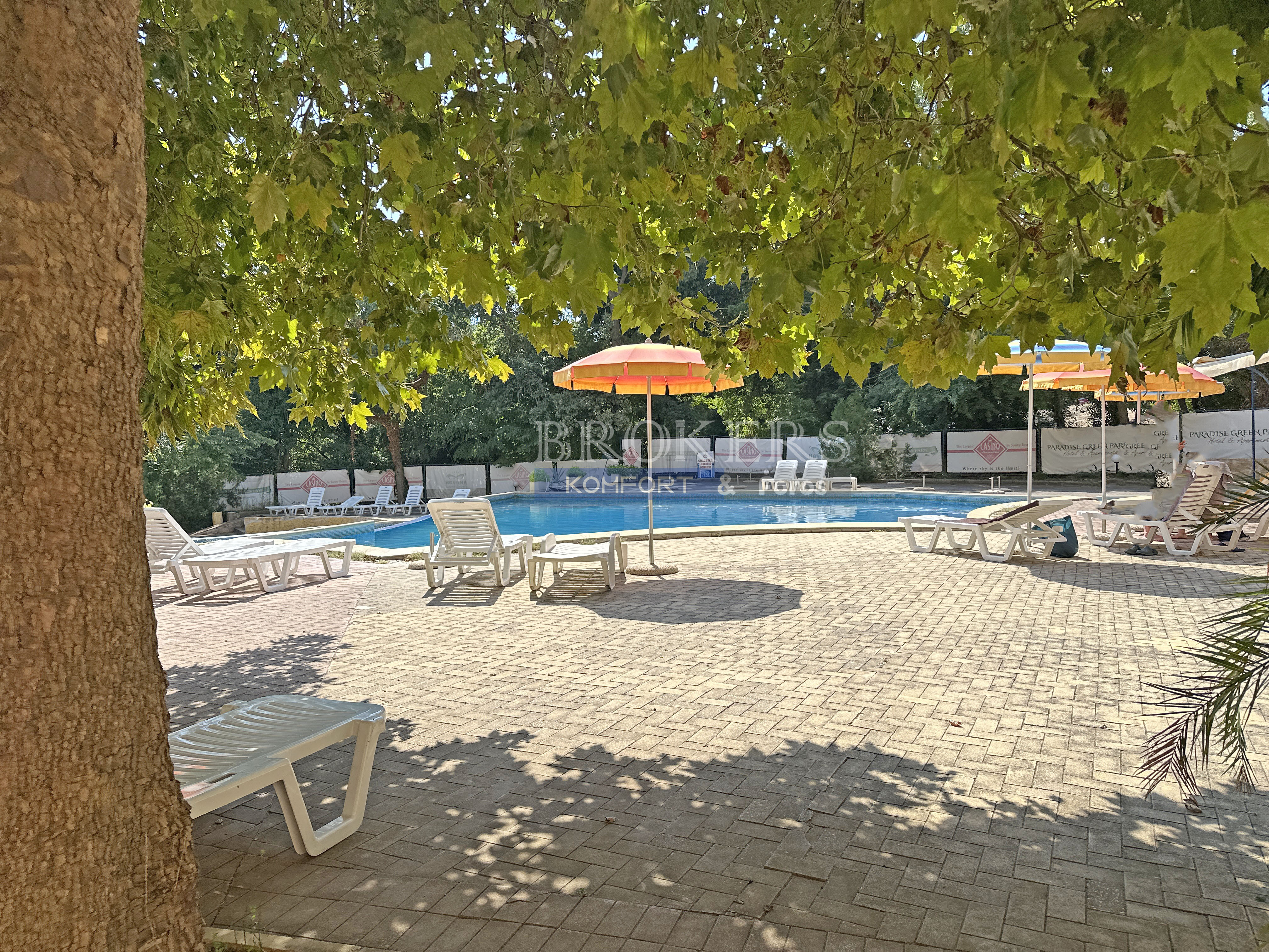 На разположение на собствениците и гостите е басейн с зона за отдих, който допринася за усещането за лукс и спокойствие през летните месеци. Сградата разполага и с контролиран достъп, паркоместа и озеленени пространства, осигуряващи сигурност и уютна атмосфера.