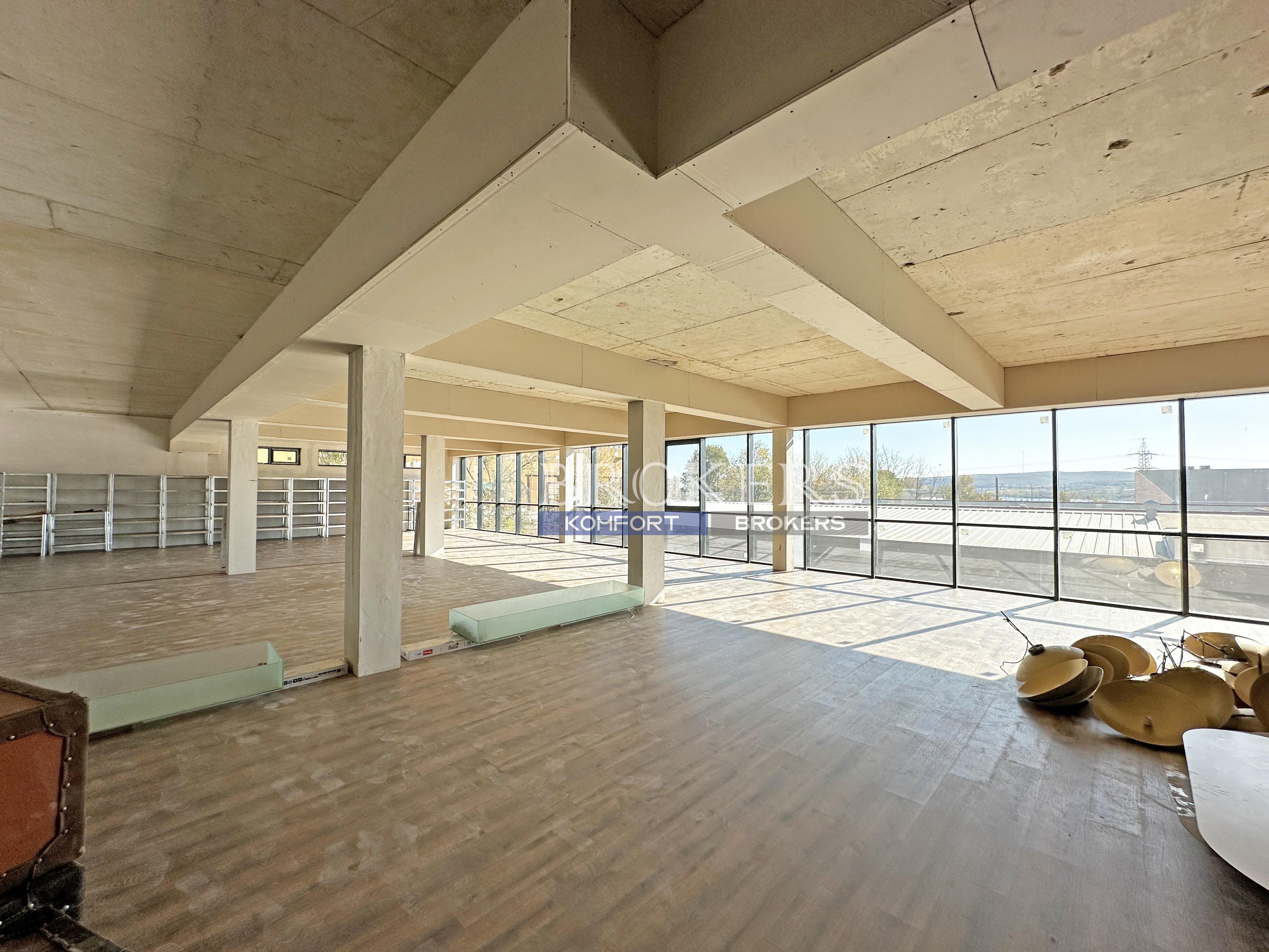 С възможност за преграждане на отделни помещения по желание на новите собственици. Подходящо е за офис, склад, зала за тренировки, търговско предствителство и други.