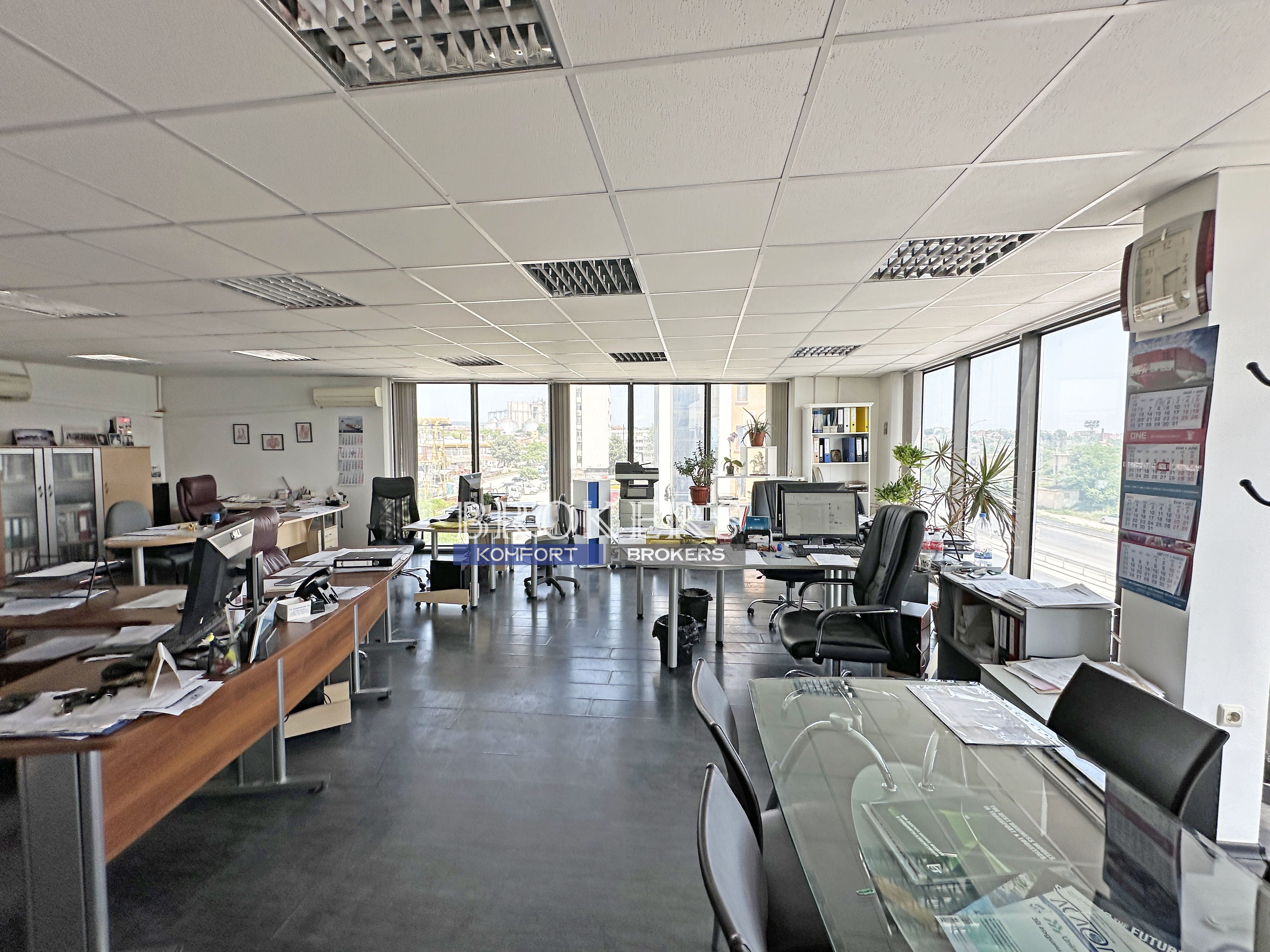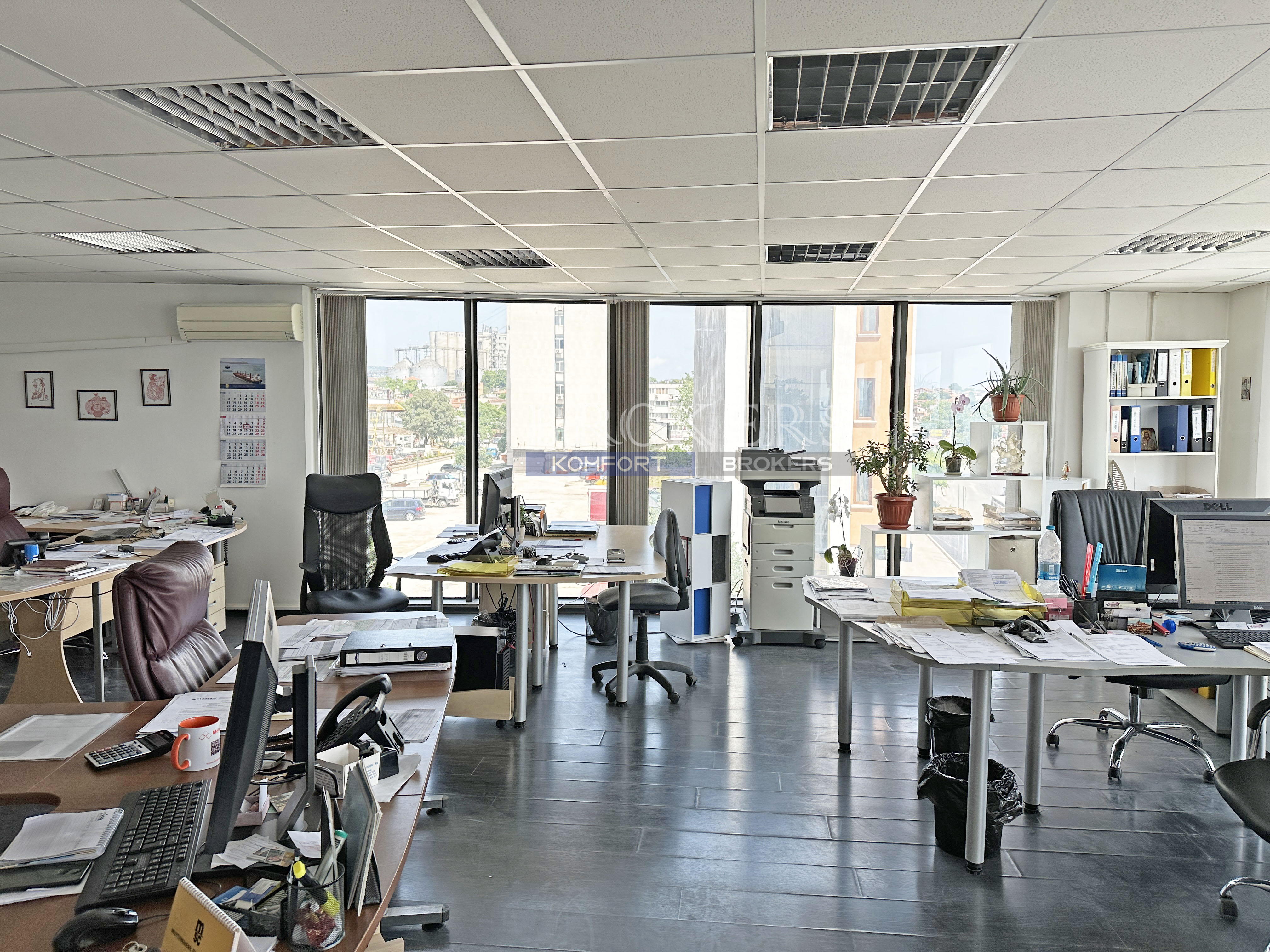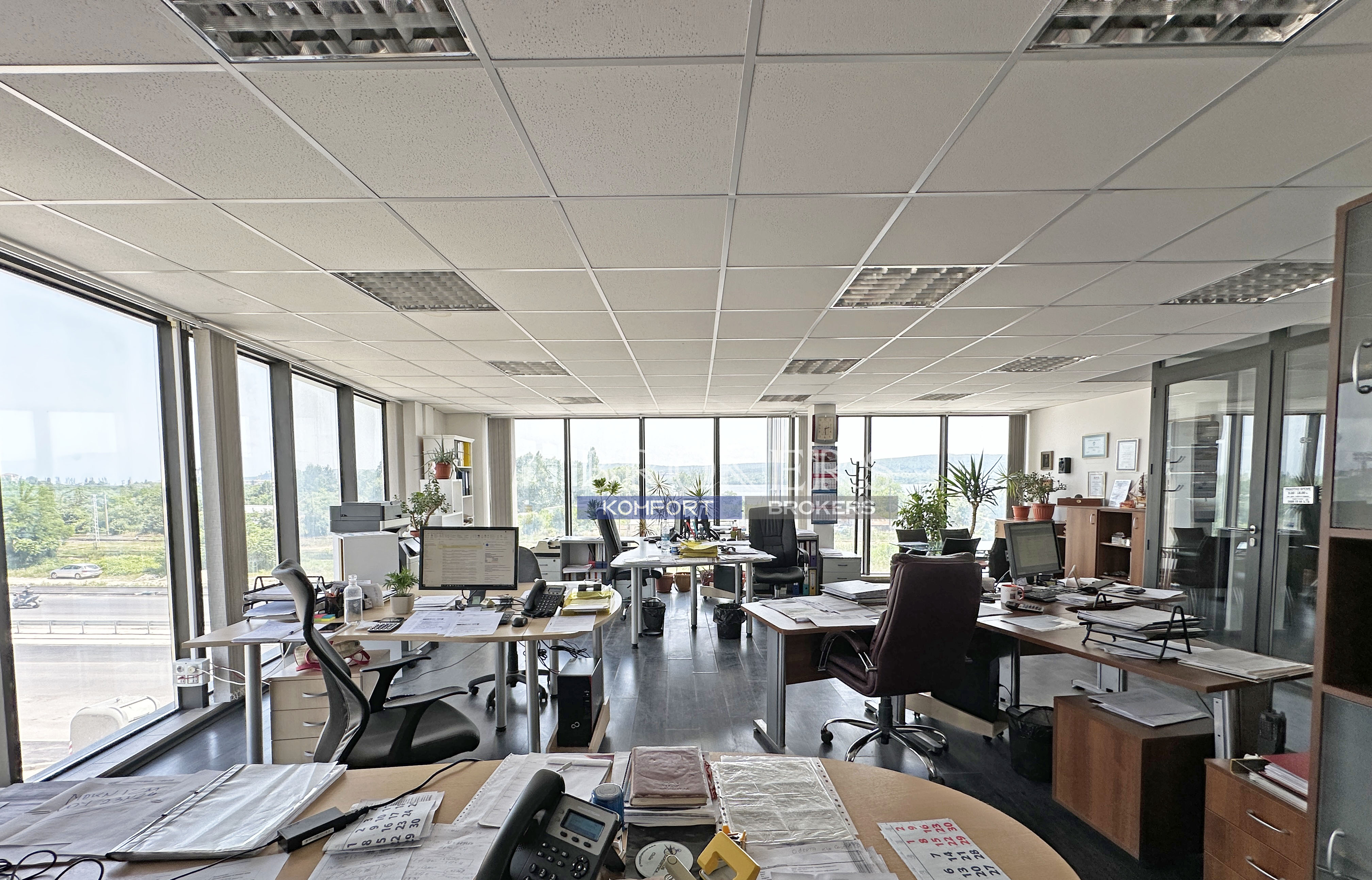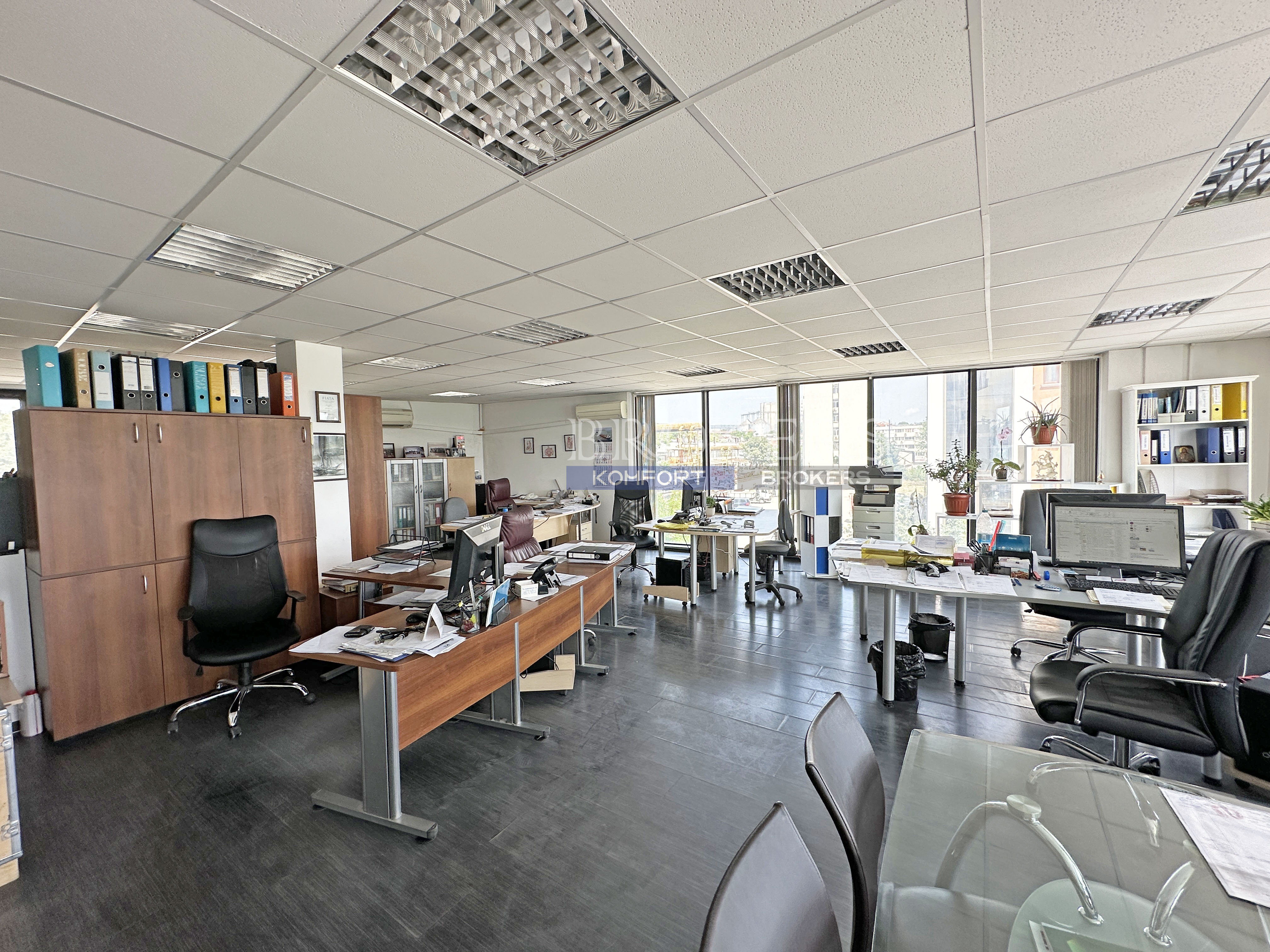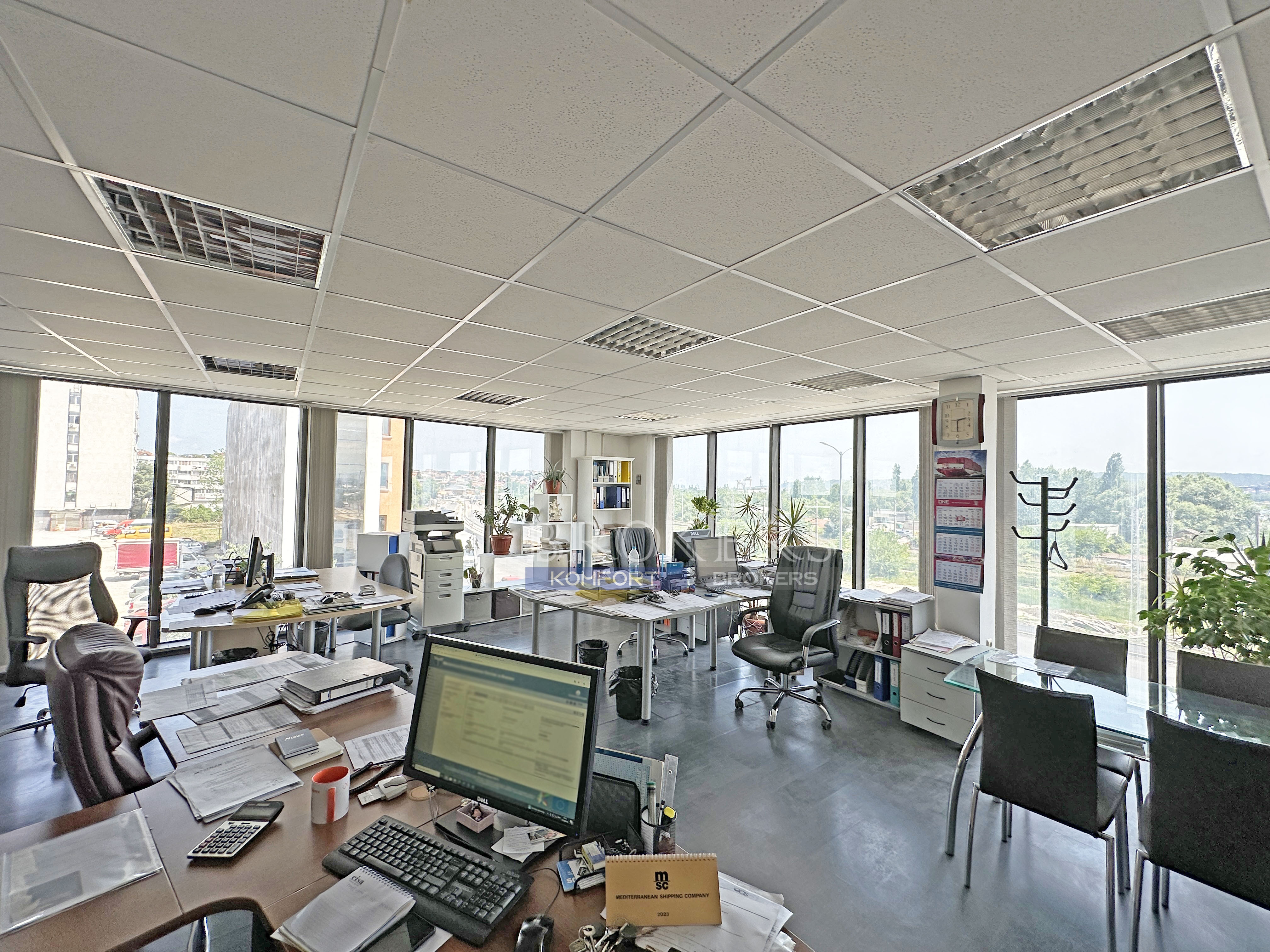 Имота е с чиста площ от 88 кв.м. и се състои от просторна офисна част, помощно помещение (битовка) и тоалетна. Разположен на трети етаж, от който се разкрива красива гледка към варненското езеро.