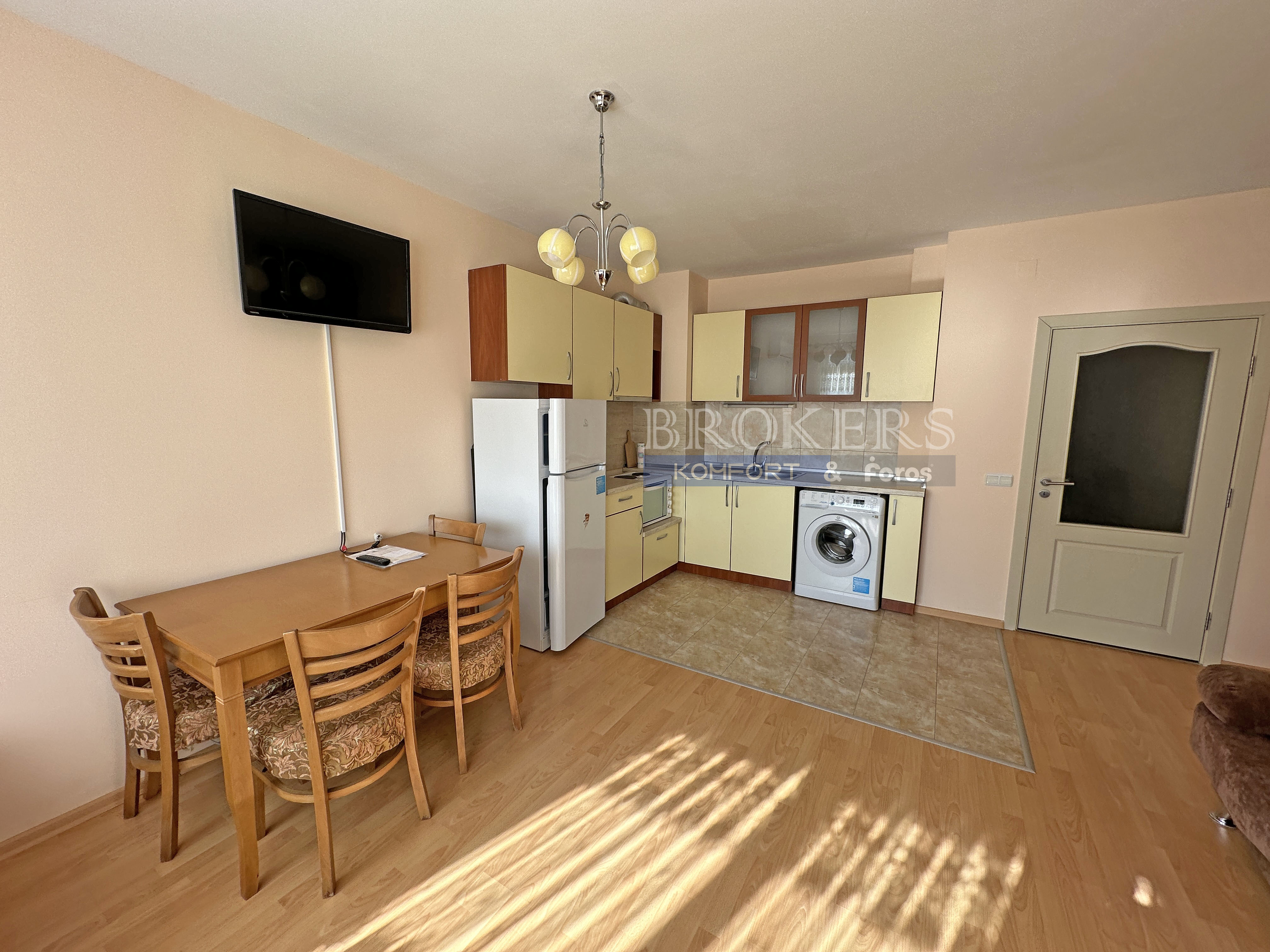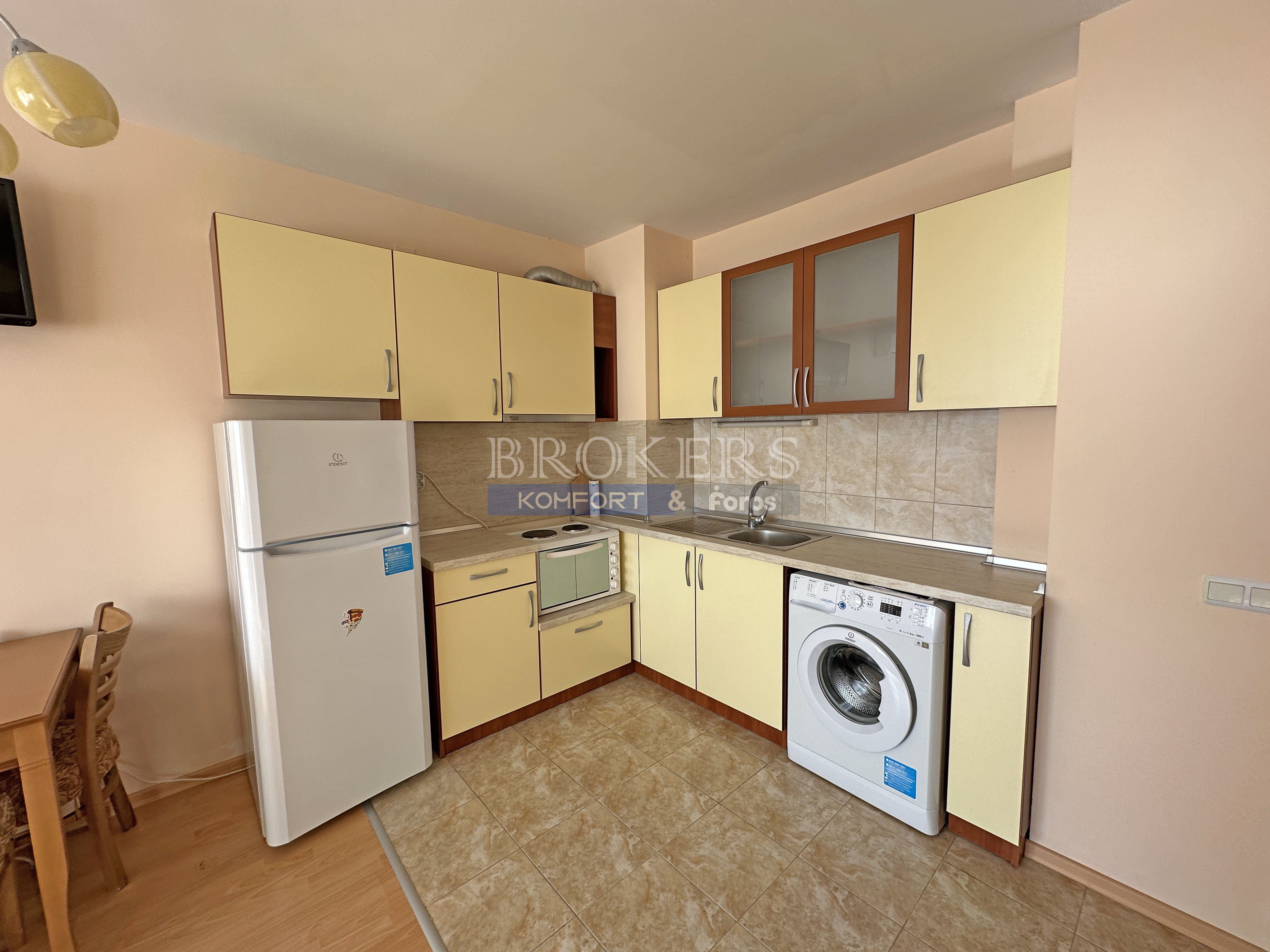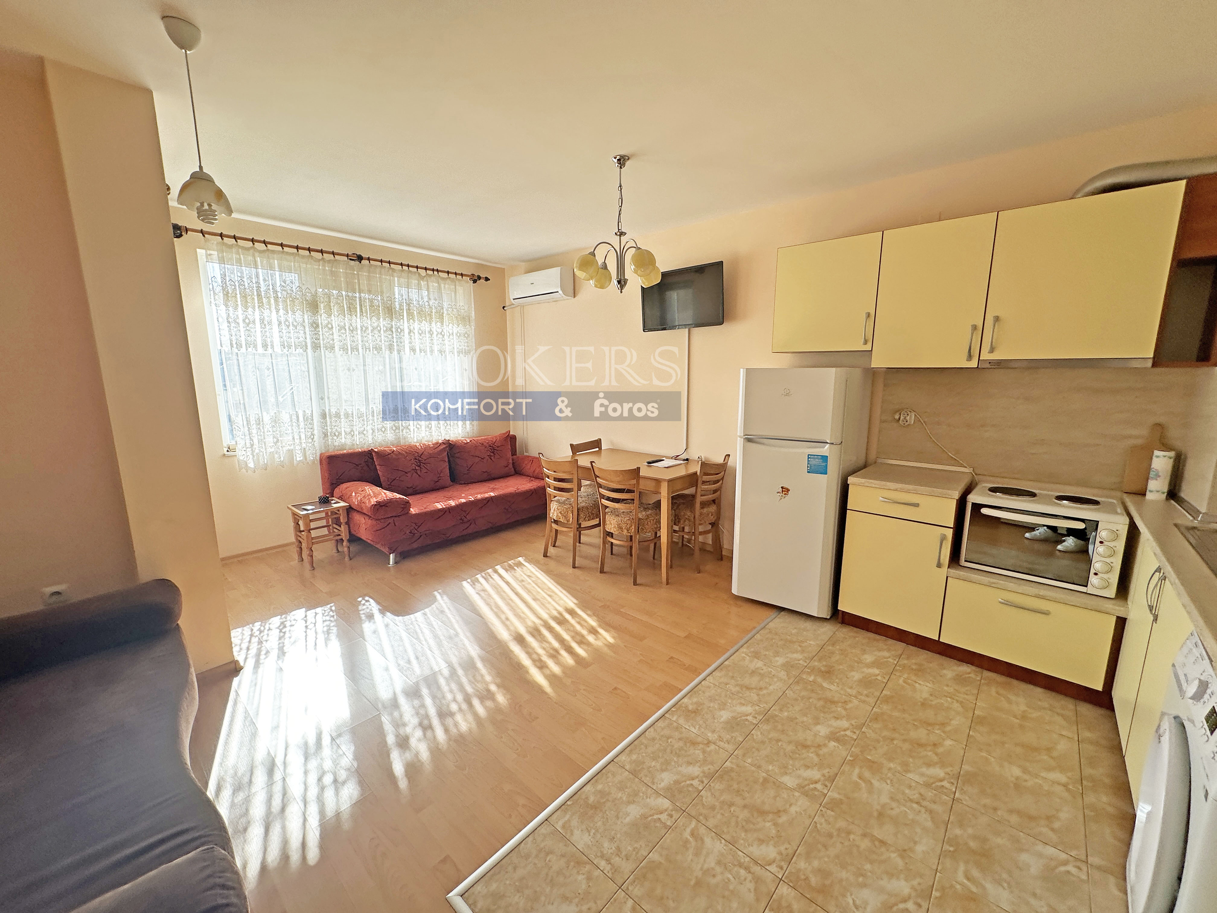 Имотът предлага удобна дневна зона с кухненски бокс, спално пространство и баня с тоалетна.