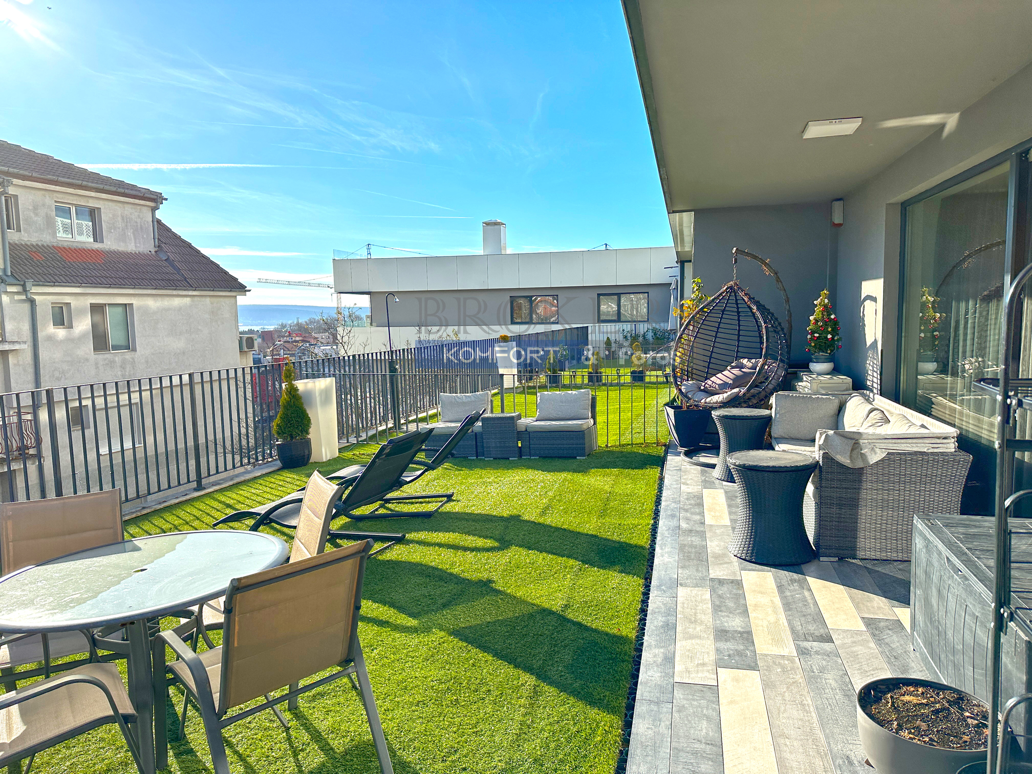 Тристаен панорамен апартамент с площ от 210 кв. м, от които 128,25 кв.м са жилищна част и 80 кв.м - веранда с учредено право на ползване.