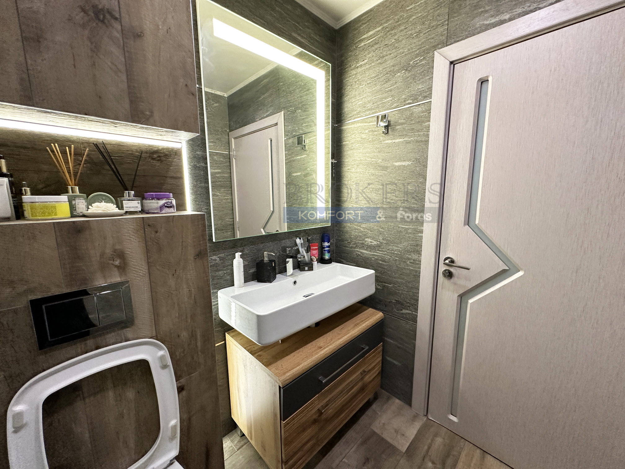Апартаментът е завършен с висококачествени материали, с усет към всеки детайл. Отоплението е решено с климатична система DAIKIN. Кухненските електроуреди са AEG. Всички електроуреди и осветление са енергиен клас ААА. Стените са с венецианска мазилка и мазилка „Рафаело“. Монтиран е и СОТ.