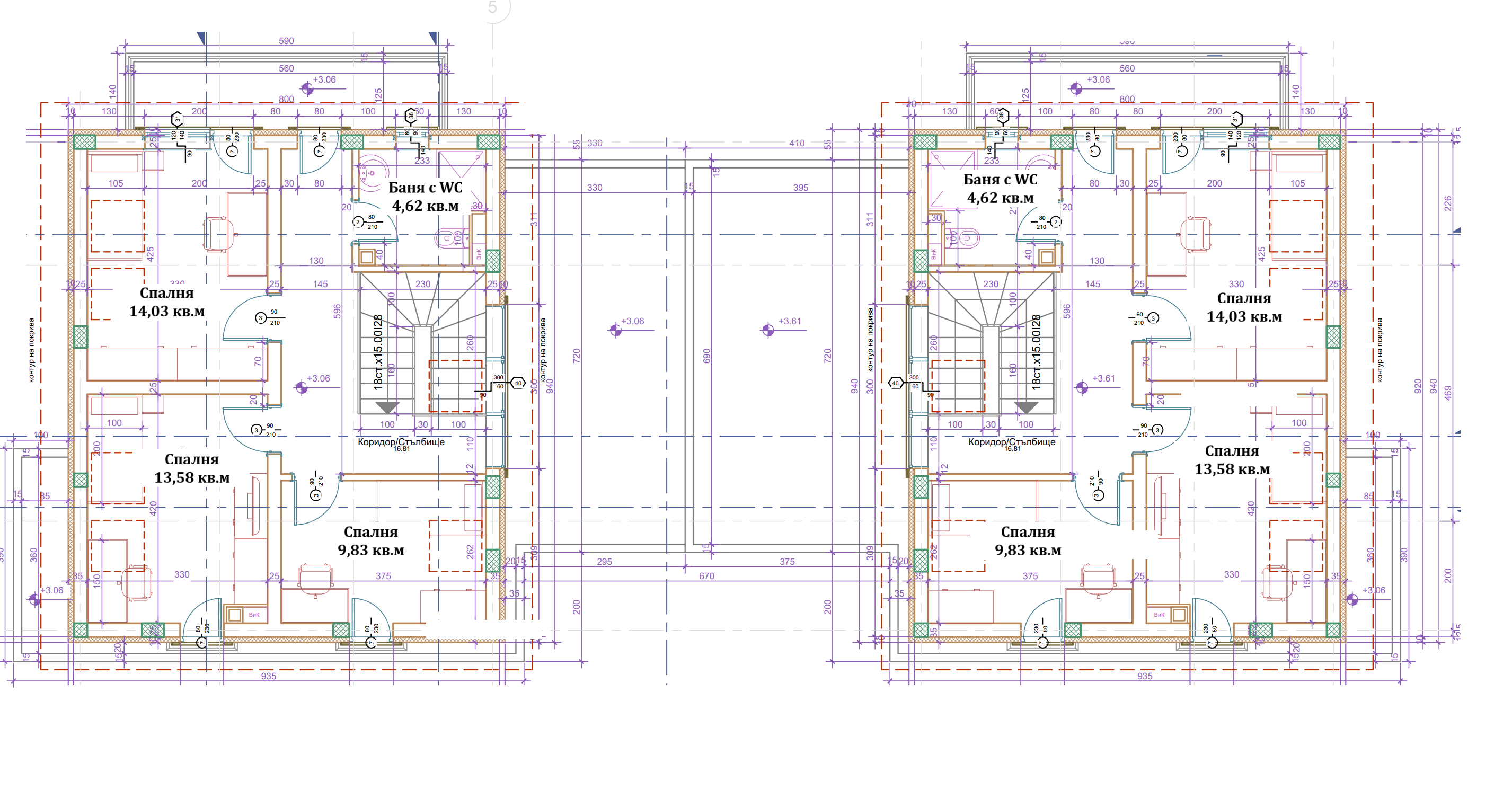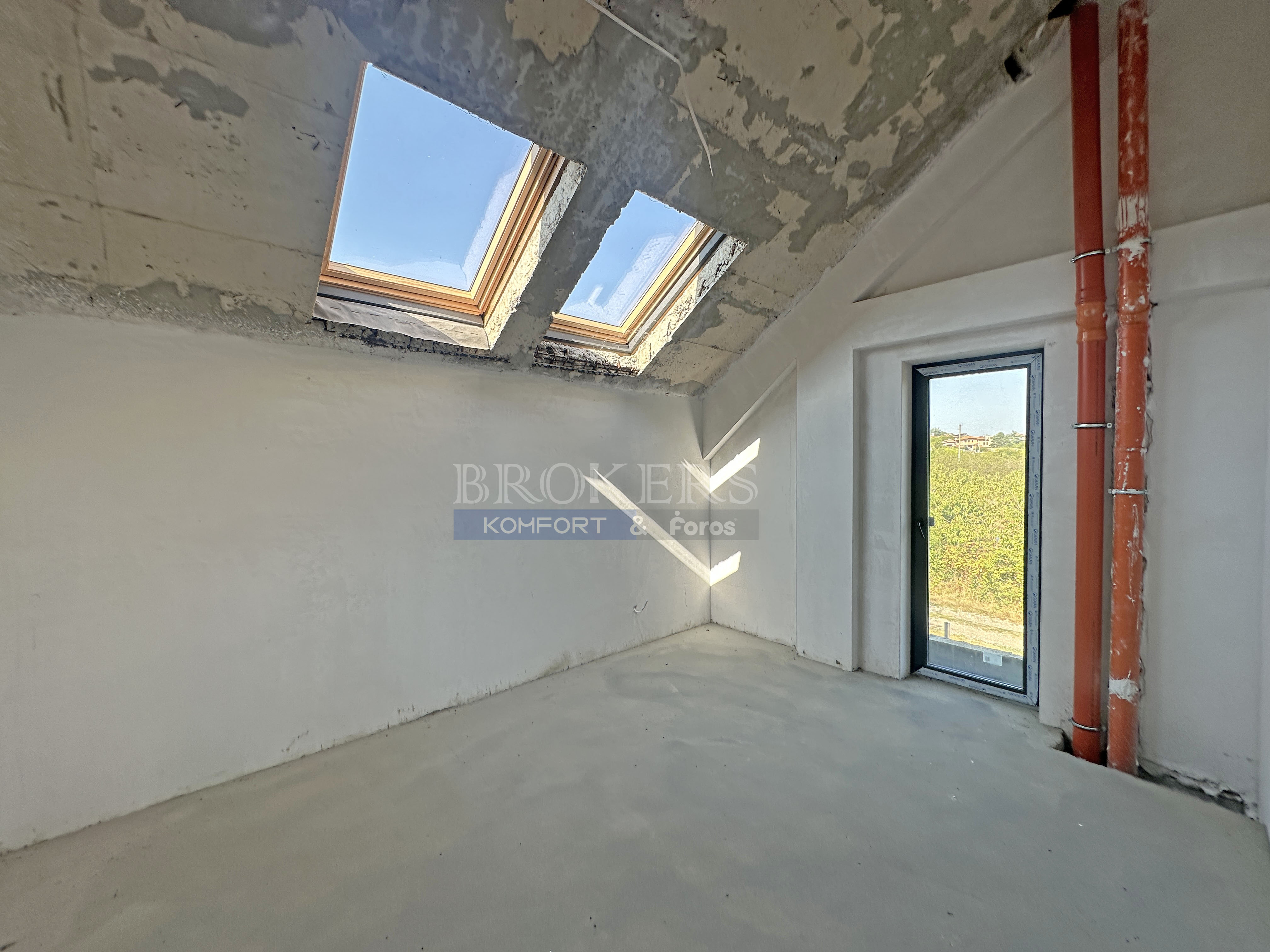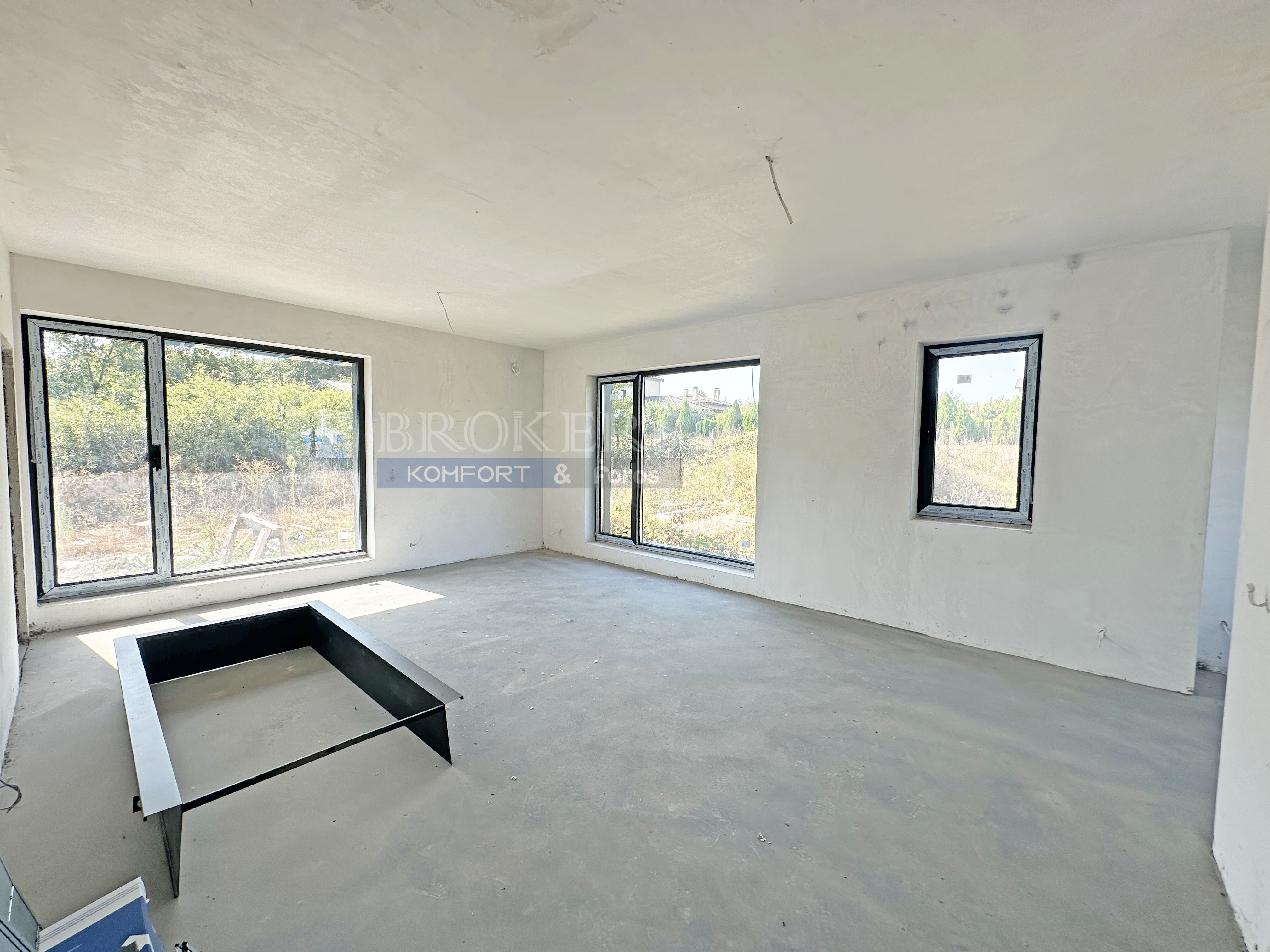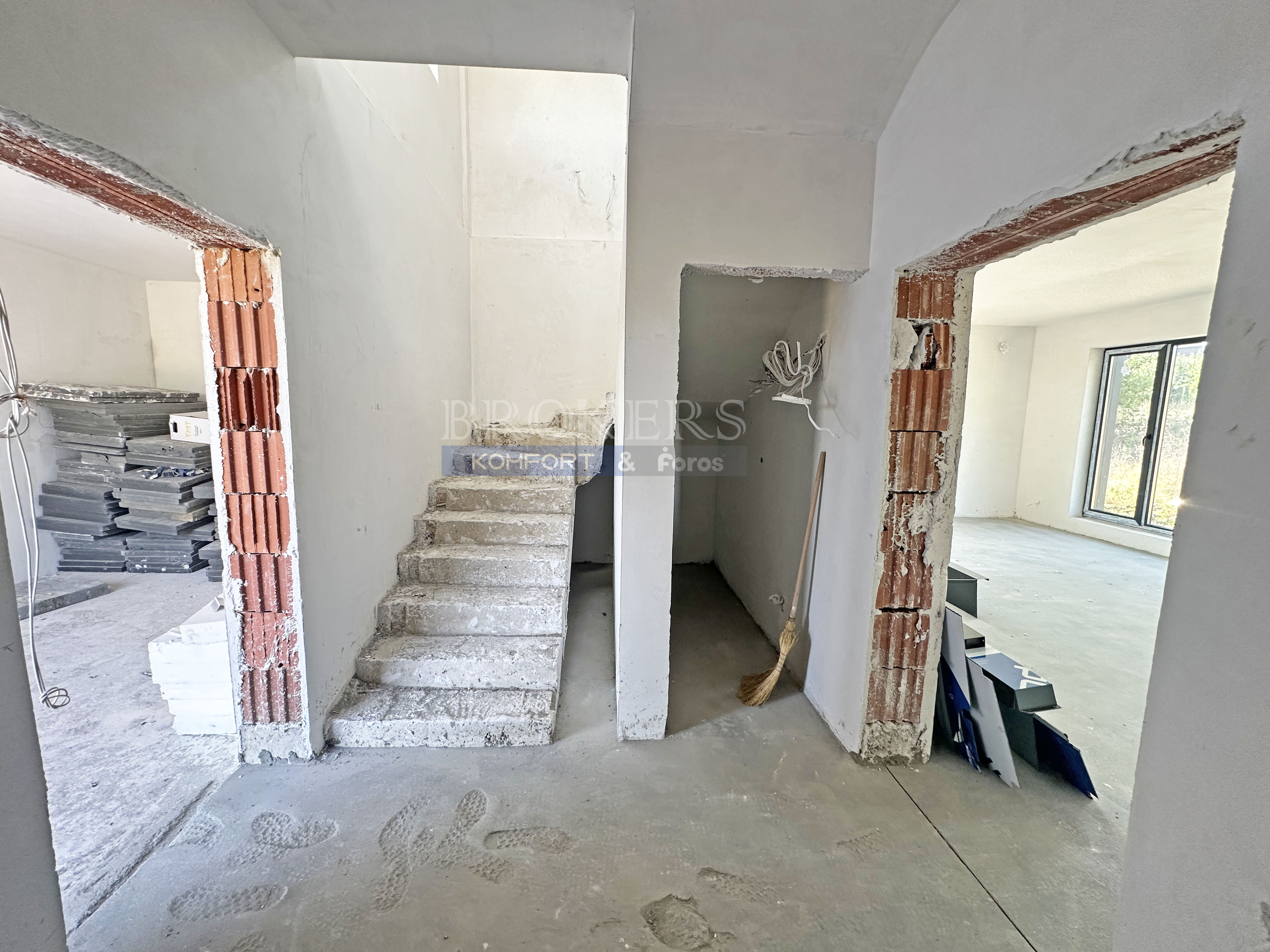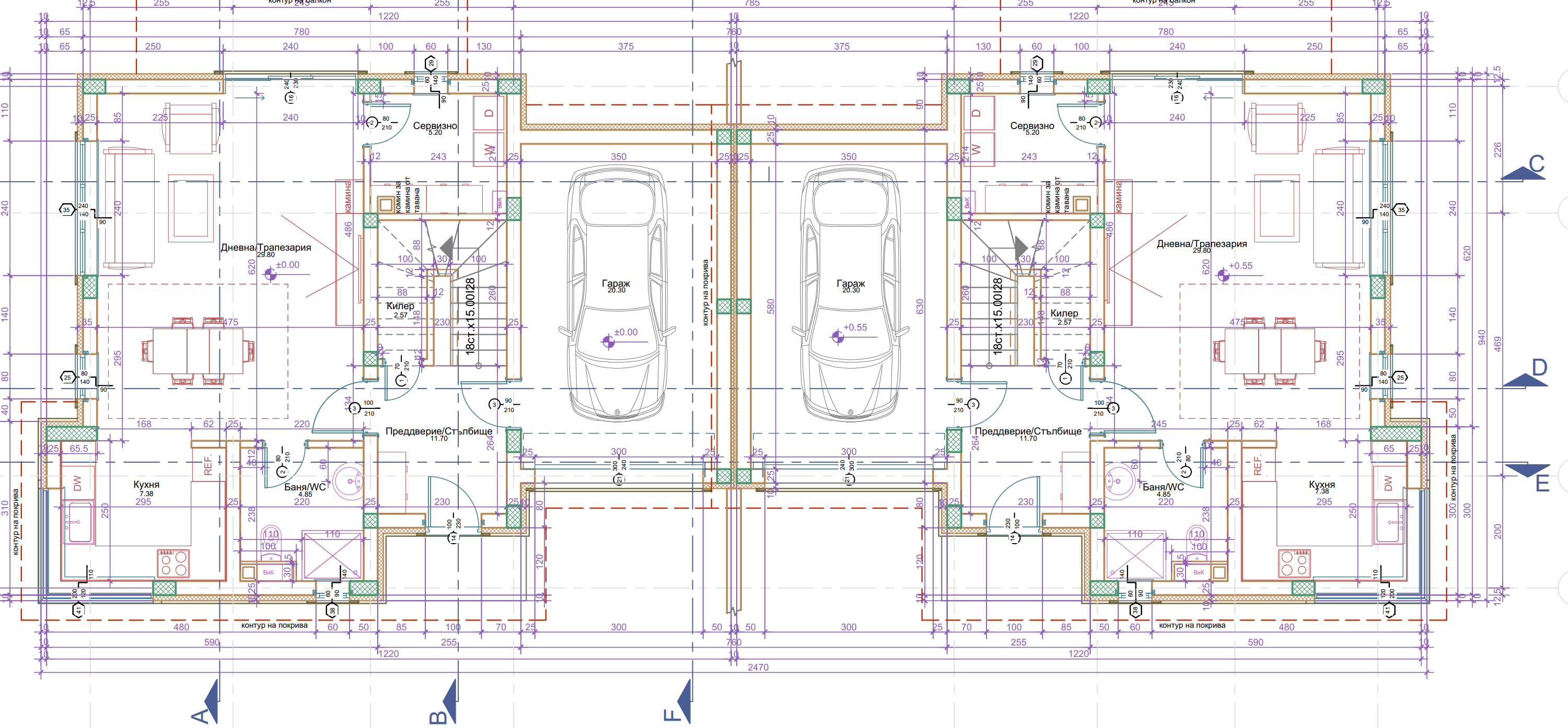 Етаж 1: Предверие, килер под стълбището, баня/WC, трапезария, от която се излиза на веранда, сервизно помещение.