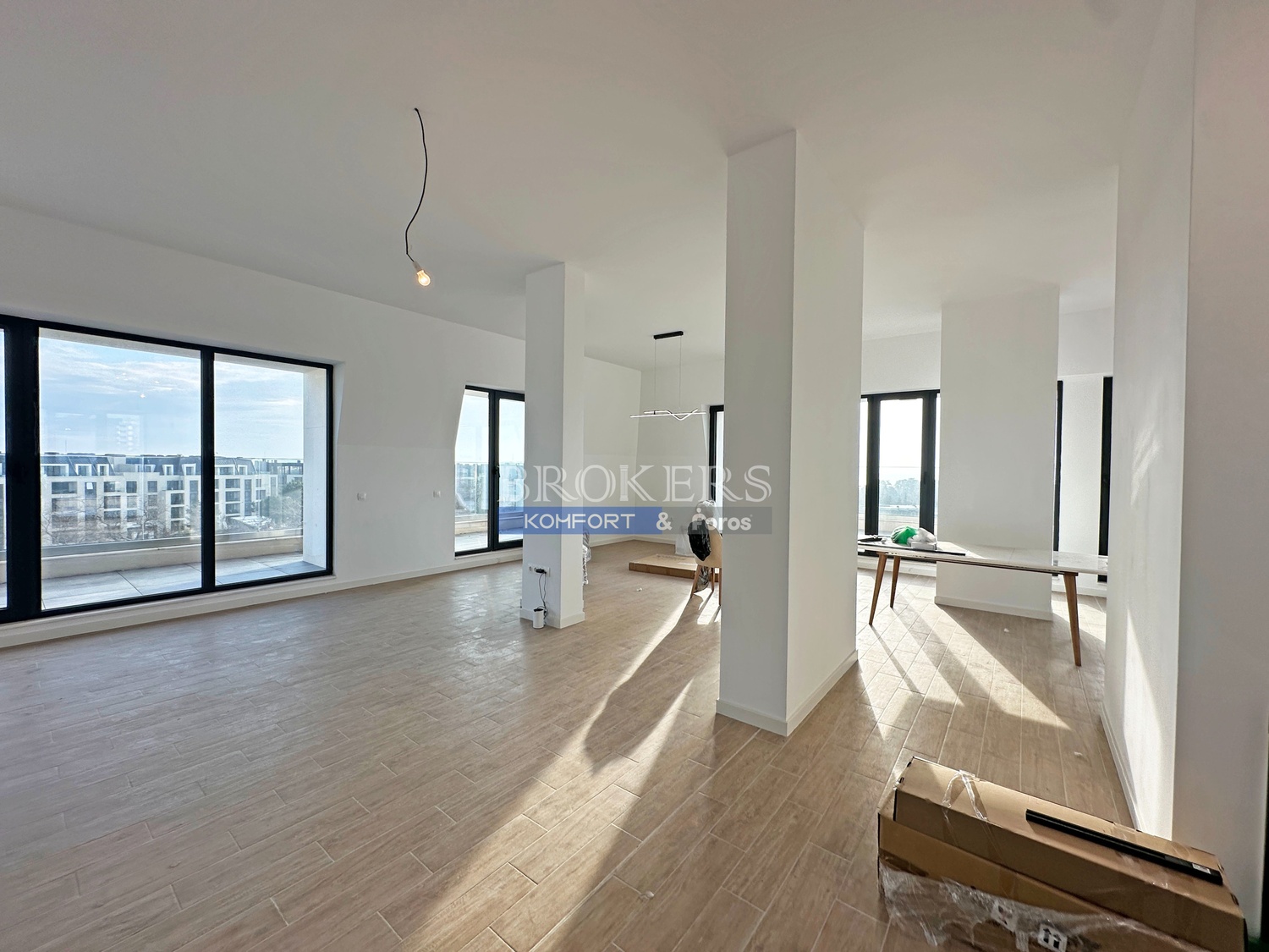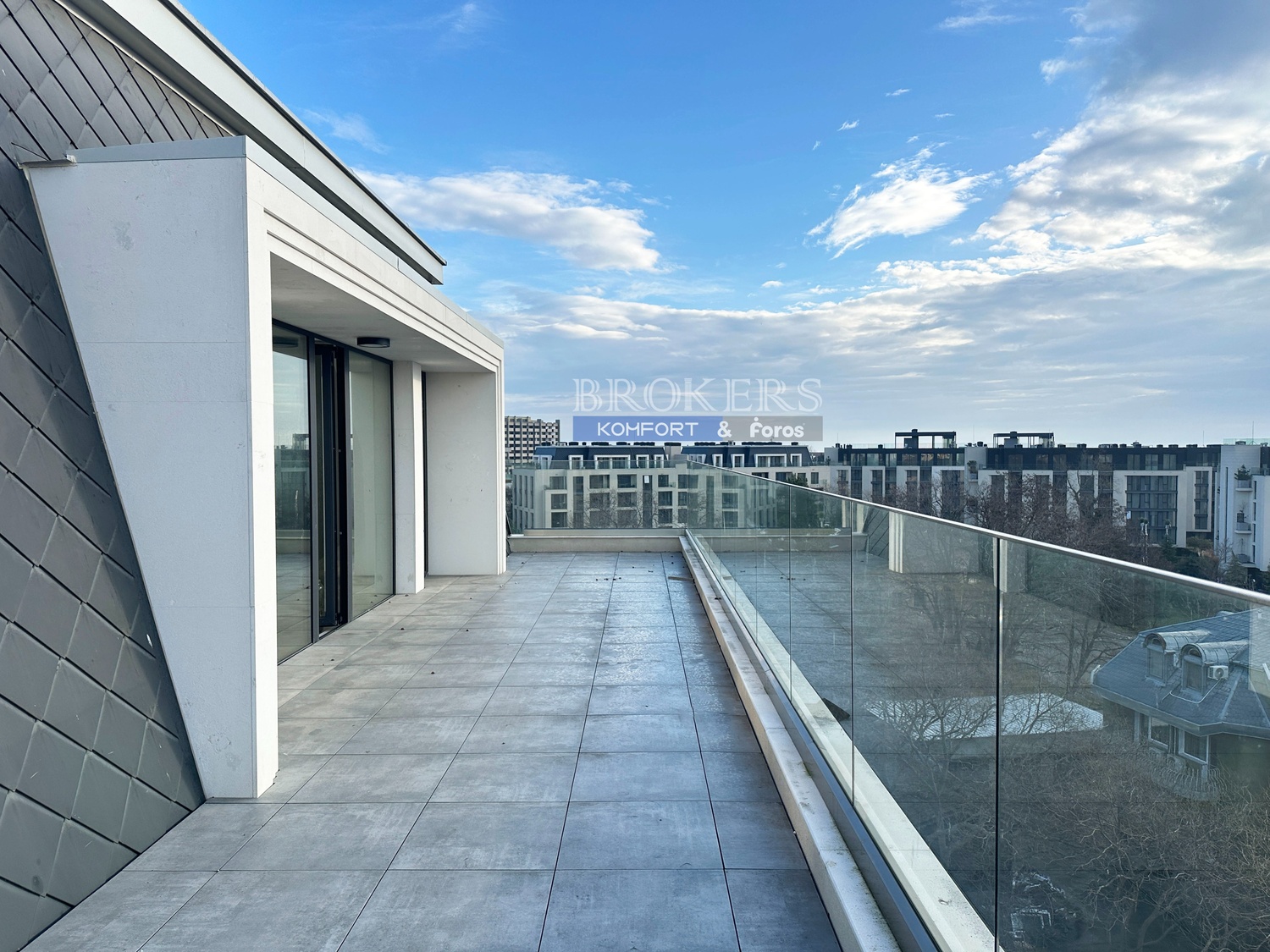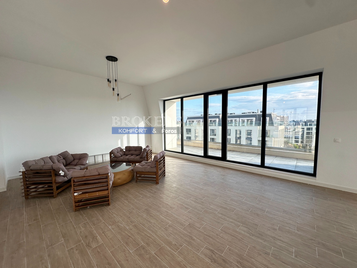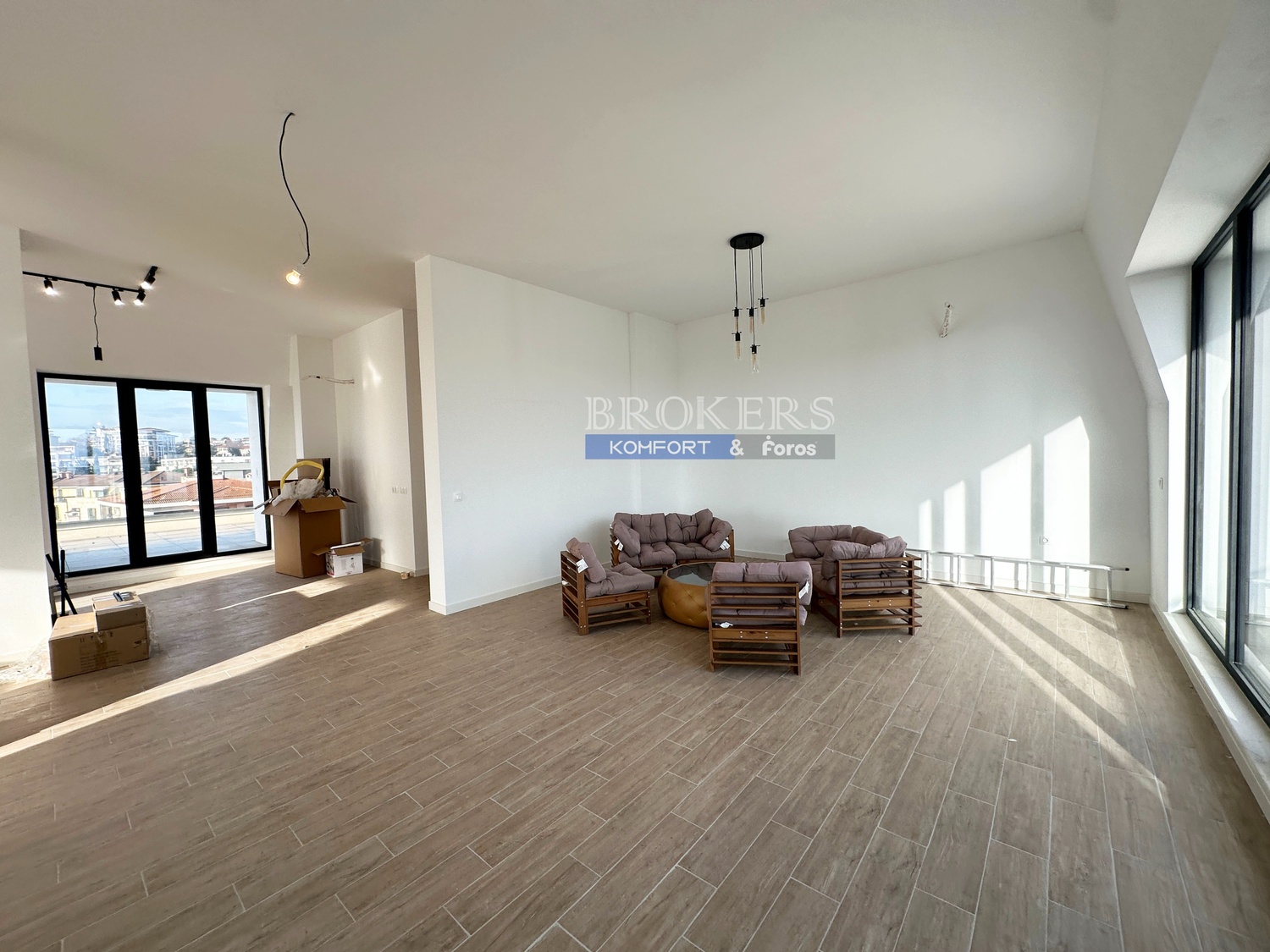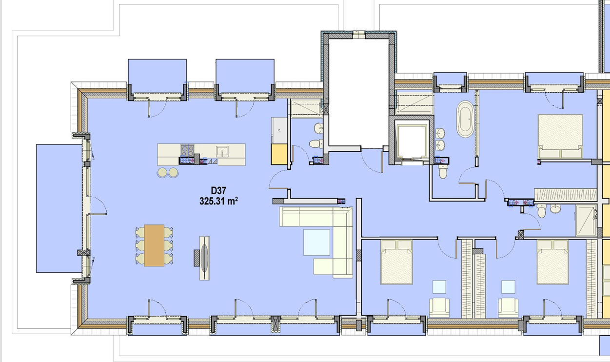 Имотът има площ от 265 кв.м, разпределена в просторна дневна, двойно осветена с излаз към панорамна тераса, три спални, три бани с тоалетни, дрешник, перално помещение. Апартаментът е единствен на етажа . Към него има и избено помещение. Завършен е с най-висок клас материали. Прозорците са френски, с алуминиева орама висок клас с троен стъклопакет. Височината на таваните е над 3 метра, което създава усещане за простор.