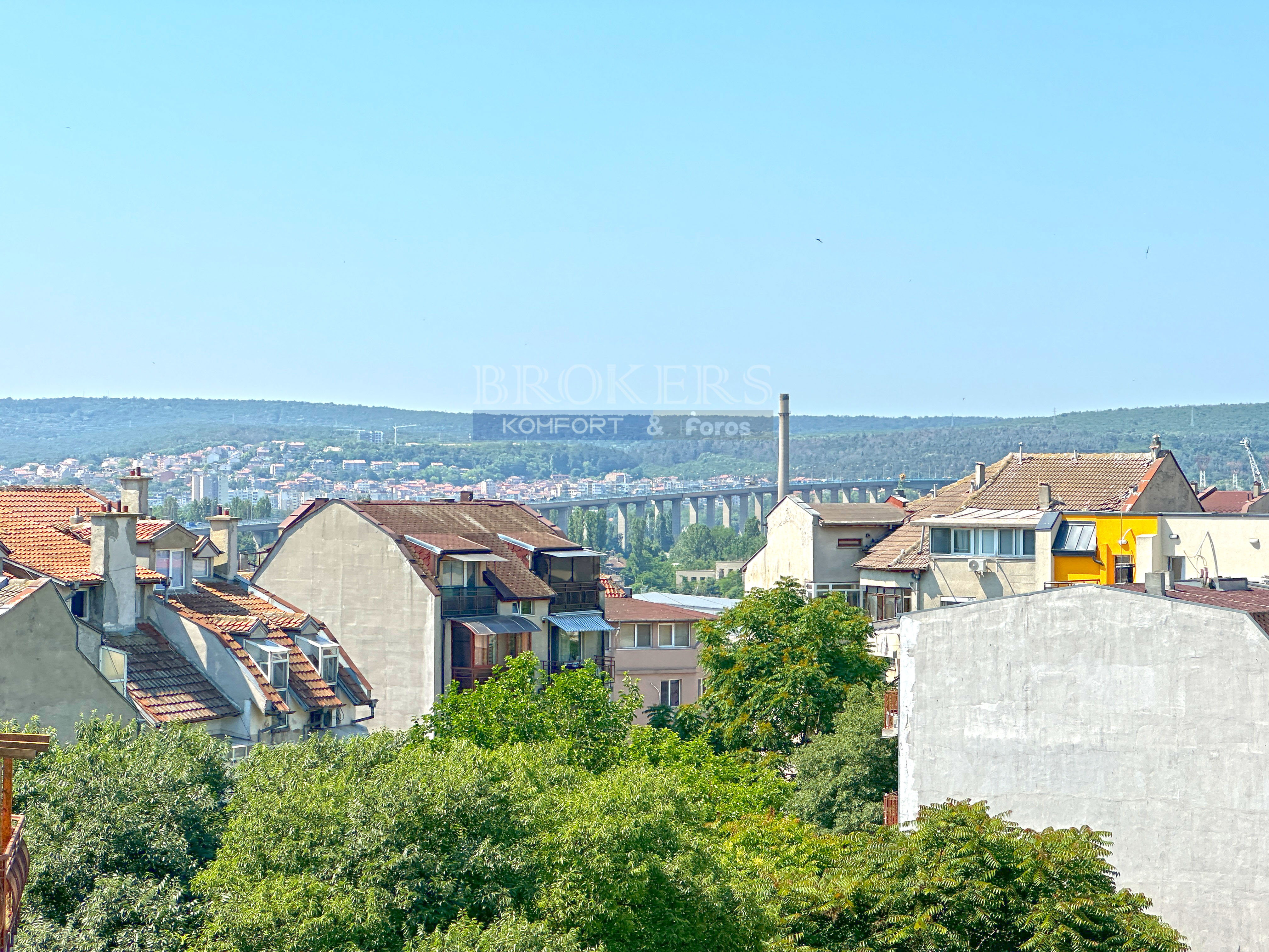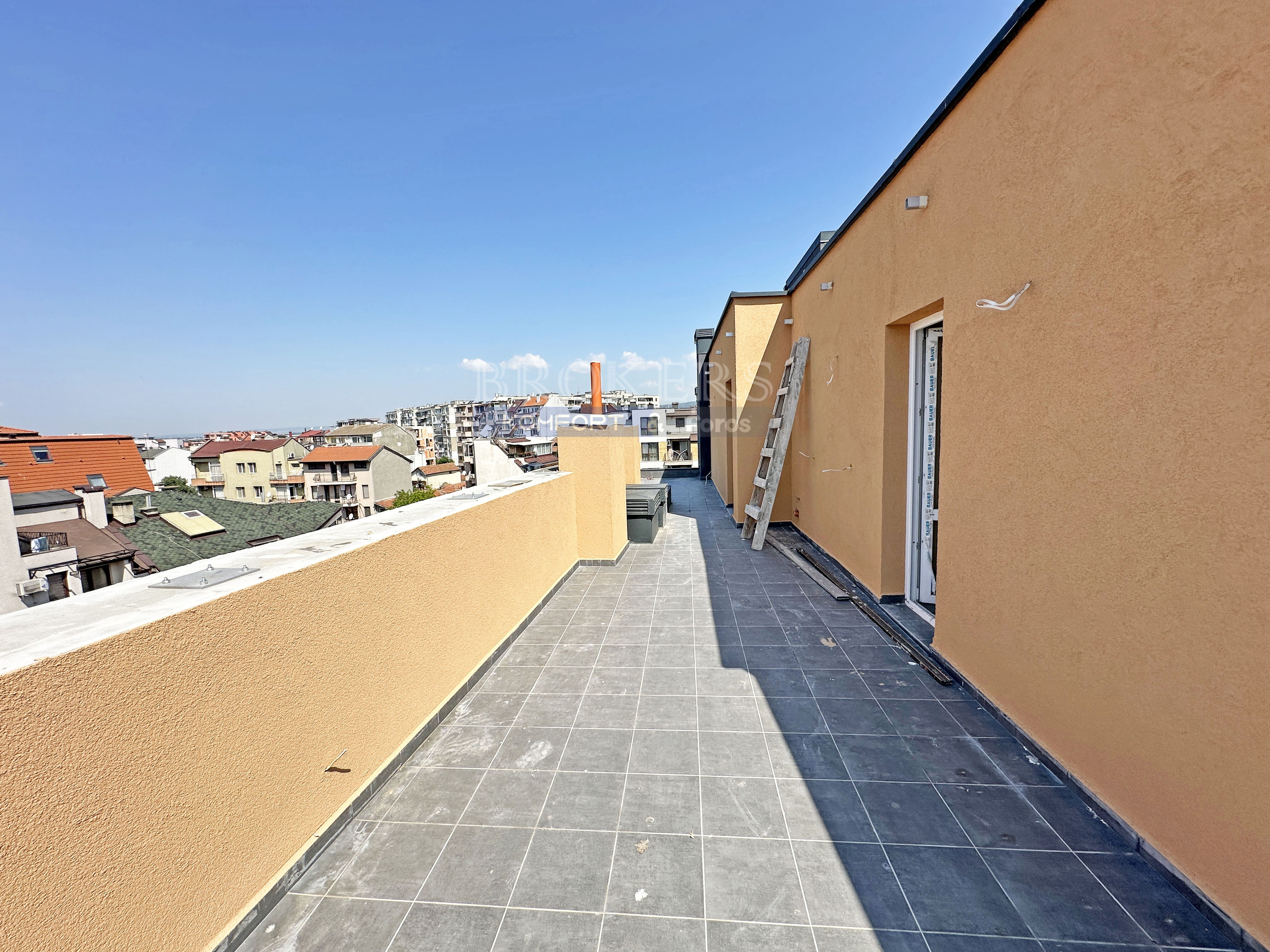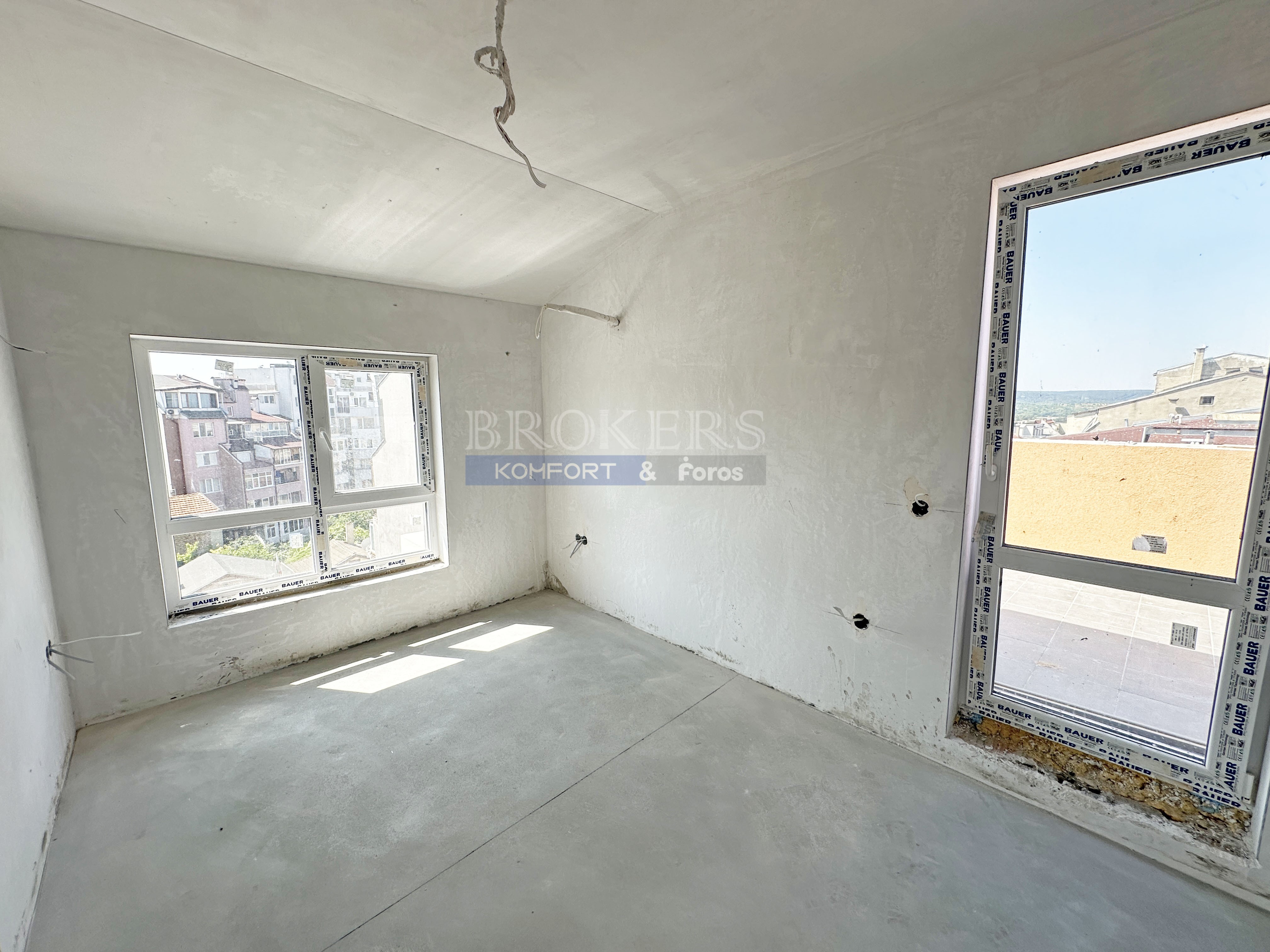 Тристаен маломерен апартамент , разположен на последен етаж в новострояща се кооперация. Апартаментът е върху целия шести етаж, самостоятелен обект на етажа с прилежаща към него тераса с площ от 32 кв.м., от която се открива панорамен изглед към "Аспарухов мост" и езерото.