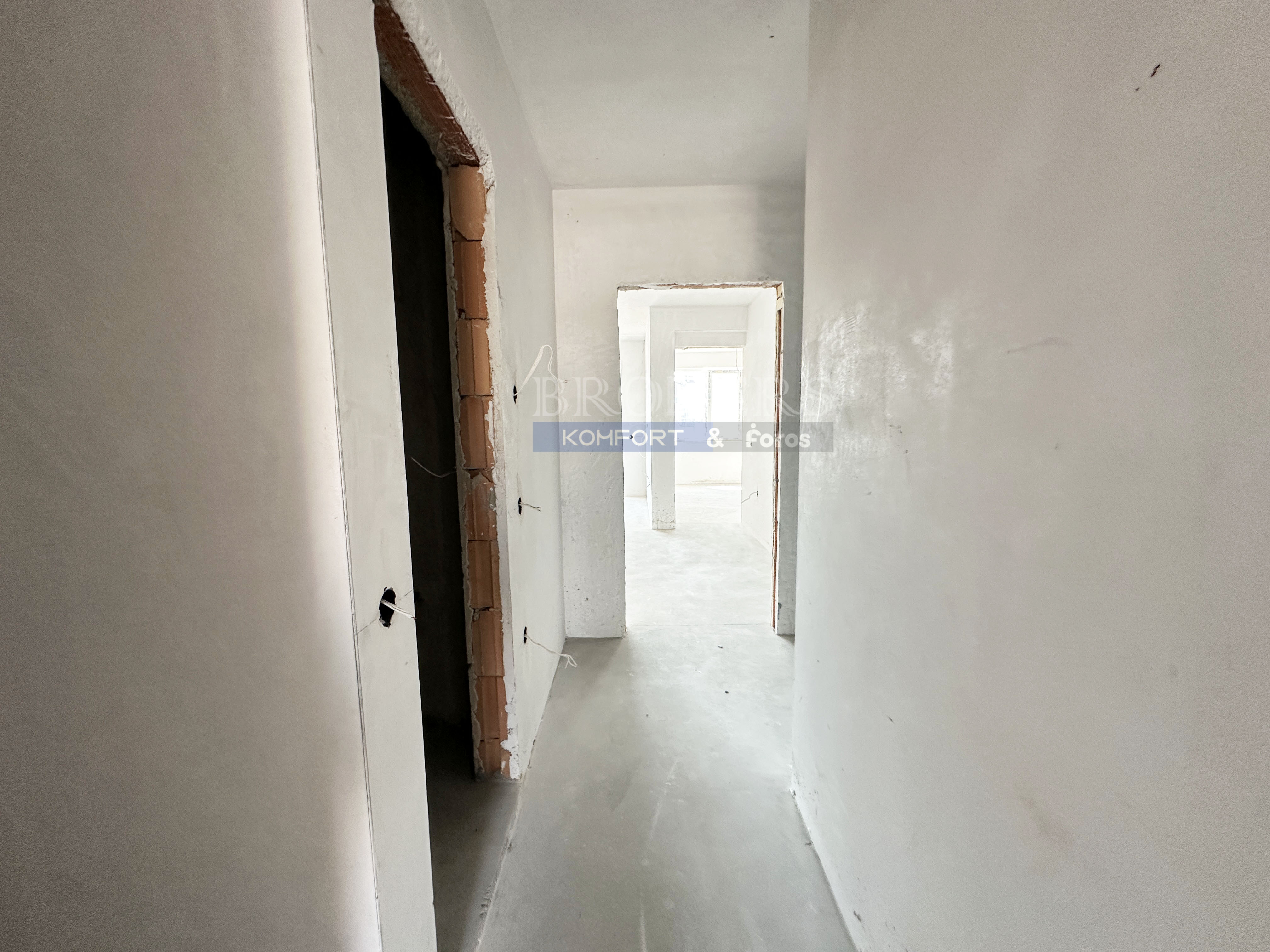 Нова сграда, луксозни общи части. Изложение изцяло ЮГ/ЮГОЗАПАД. Състои се от: коридор, санитарен възел, дневен тракт, спалня, стая тип 'кабинет', малка тераса и панорамна тераса. Прилежащо Избено помещение с площ от 5,34 м2. Възможност за закупуване на Паркомсто.