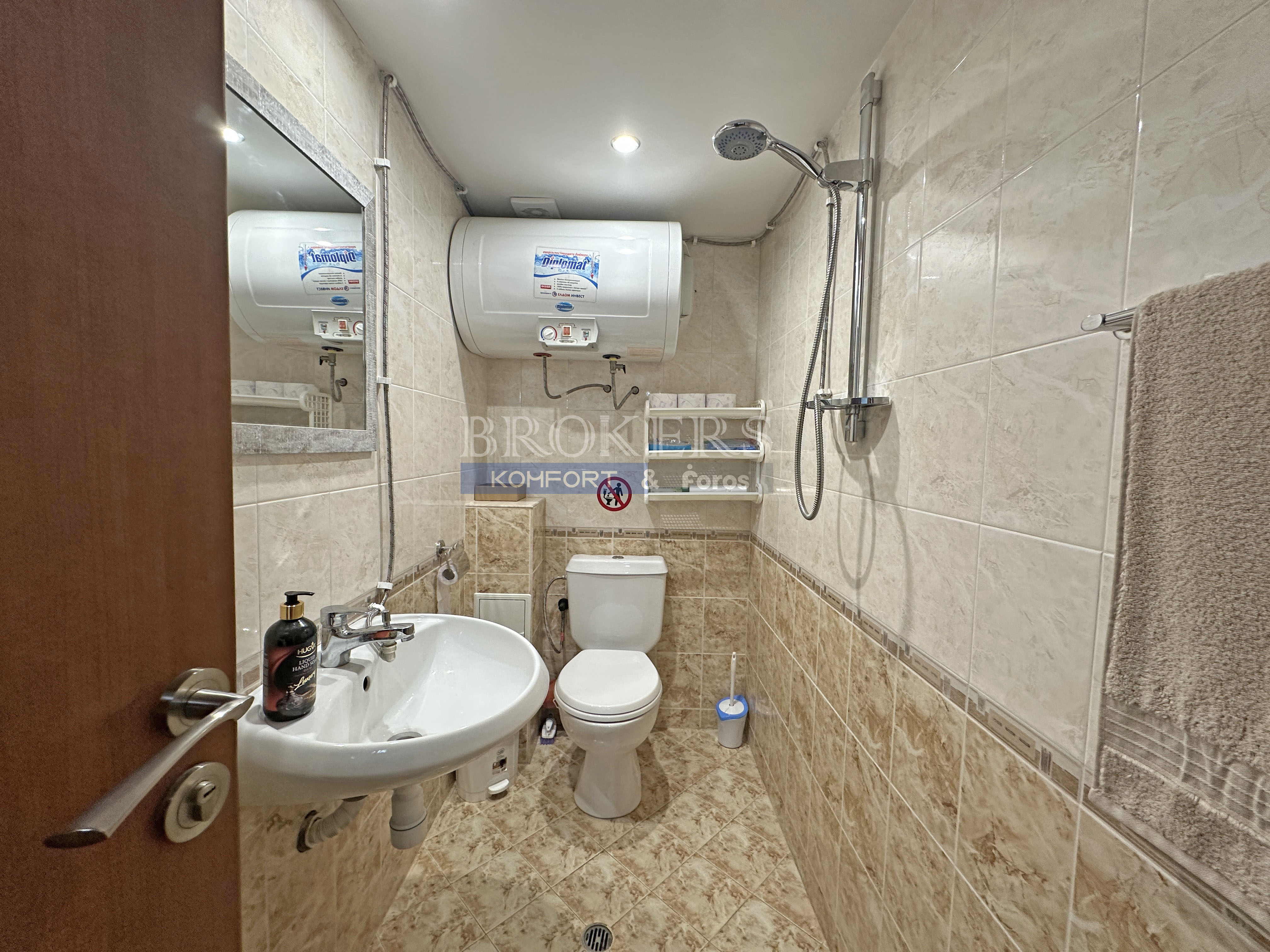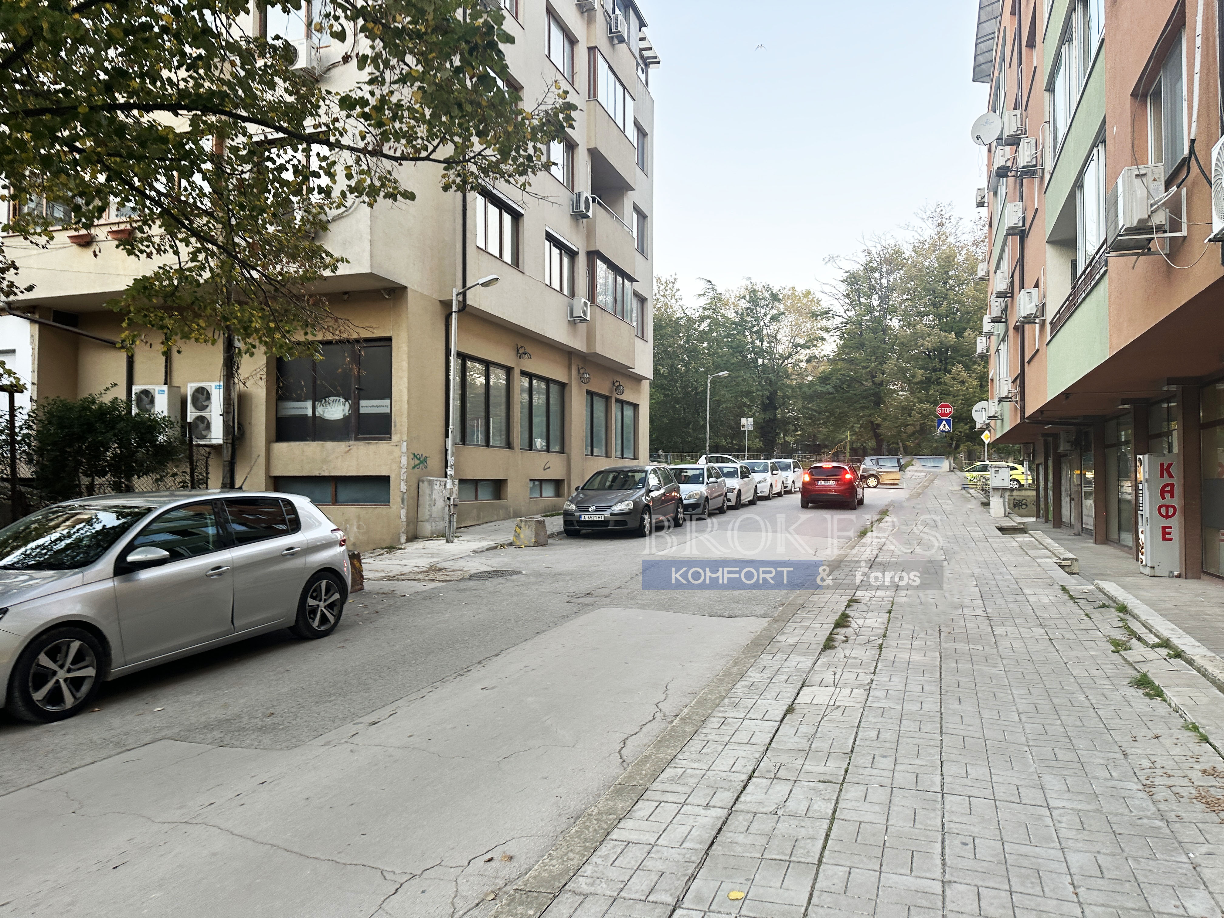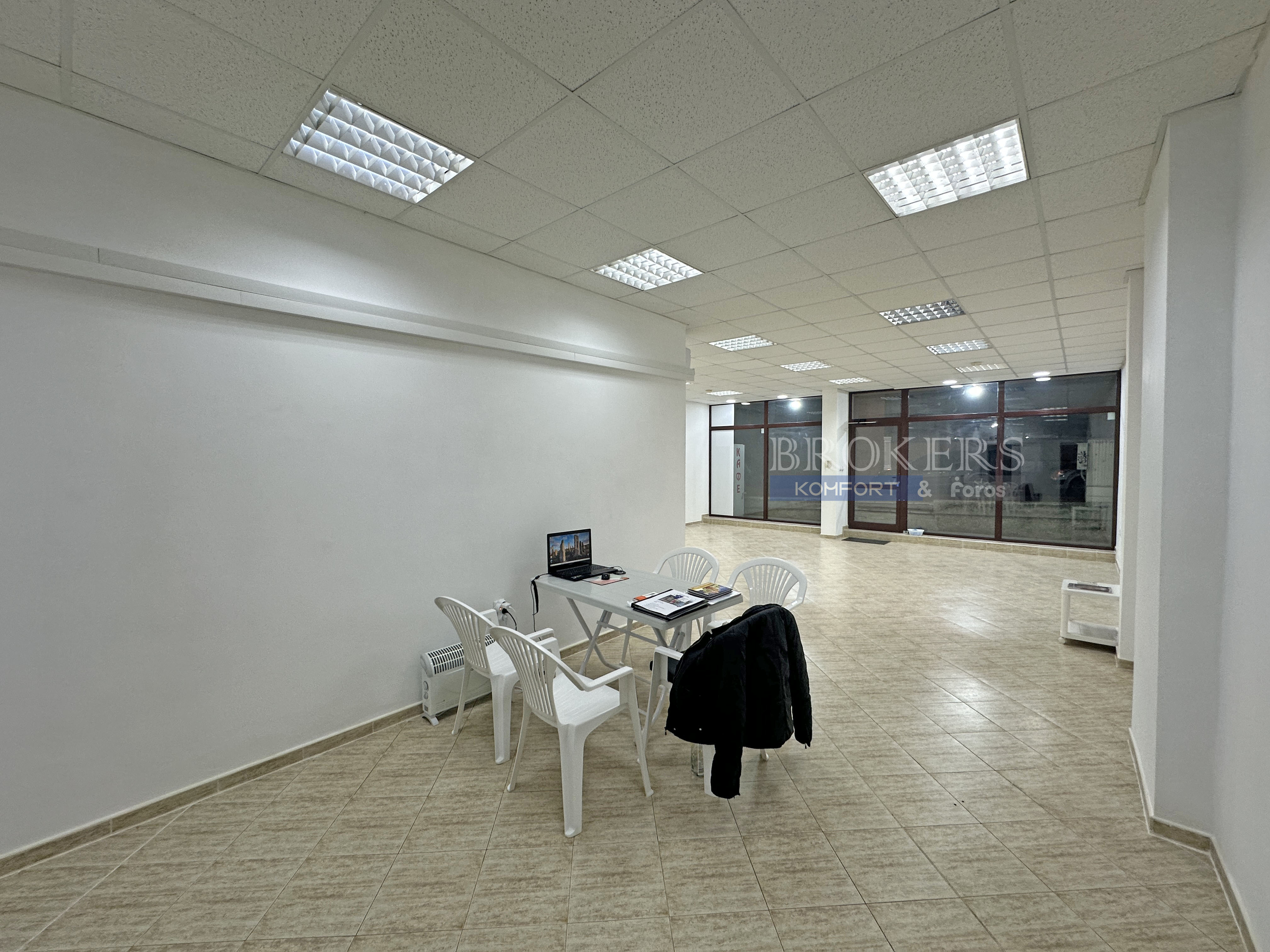 Помещението предлага функционално разпределение просторна зала с витрина към улицата, осигуряваща добра осветеност и видимост, както и самостоятелен санитарен възел. Имотът е завършен до ключ , което го прави напълно готов за наемане и използване без допълнителни инвестиции. Със статут на търговски обект и гъвкаво вътрешно пространство е подходящ за различни дейности салон за красота, кантора, офис, бутиков магазин, студио за красота и други. Отоплението и охлаждането се осъществяват с климатици.