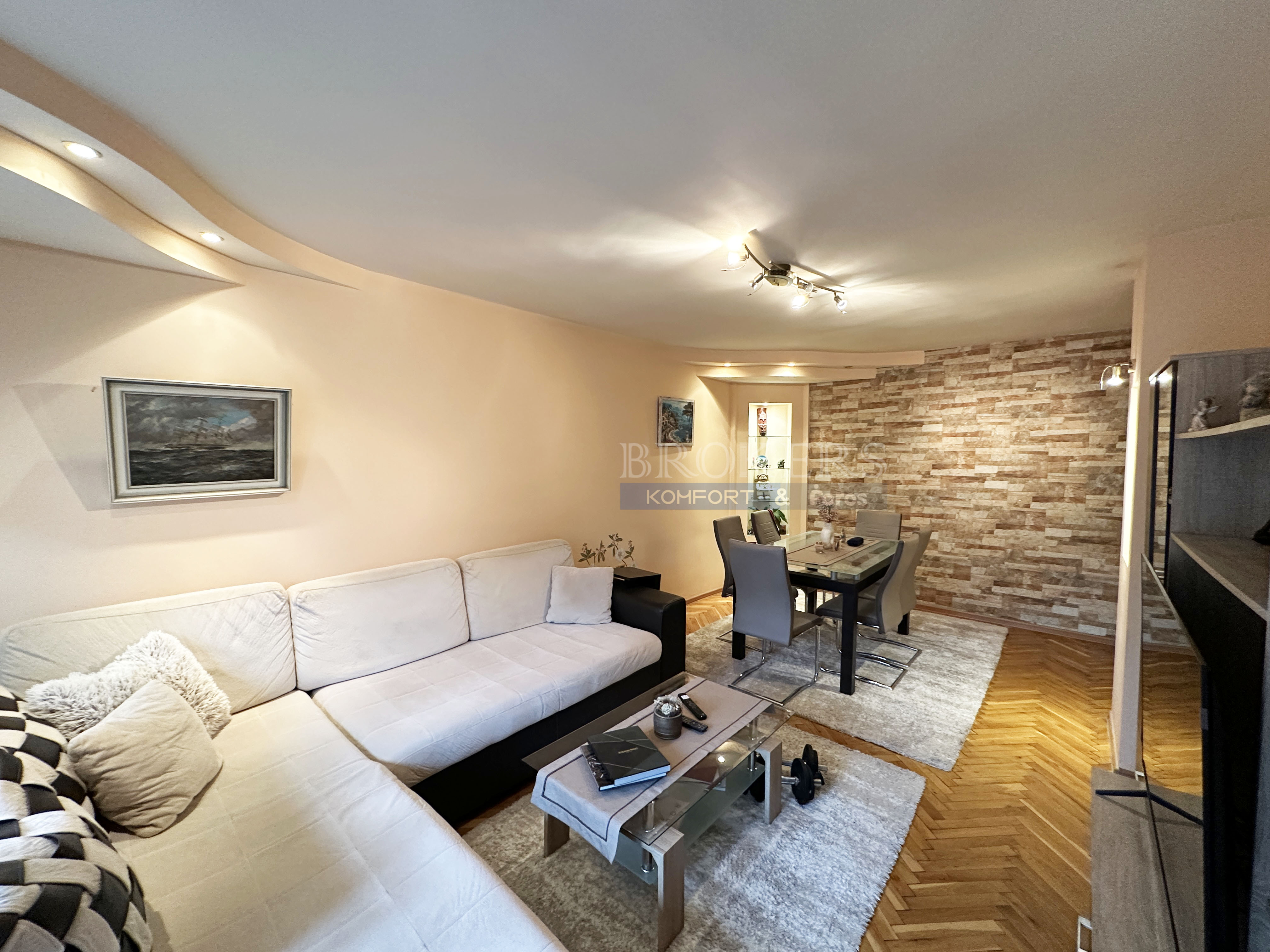 Жилището е с площ от 70 кв.м и се намира на четвърти етаж в панелен блок.